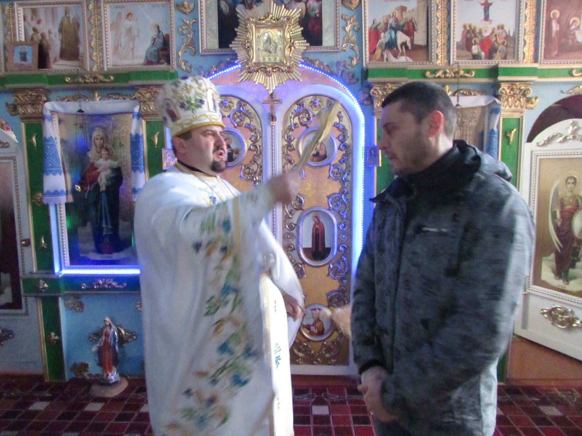 Коли церковний обряд був на стадії завершення до храму прийшов воїн, який за декілька днів повертається на передову після відпустки з ротації. Козятинчанин прийшов, щоб святий отець благословив його на повернення з війни додому. Протоієрей Василь Влізло благословив нашого земляка а церковний хор з прихожанами заспівали їдочому на війну «Многая літа»