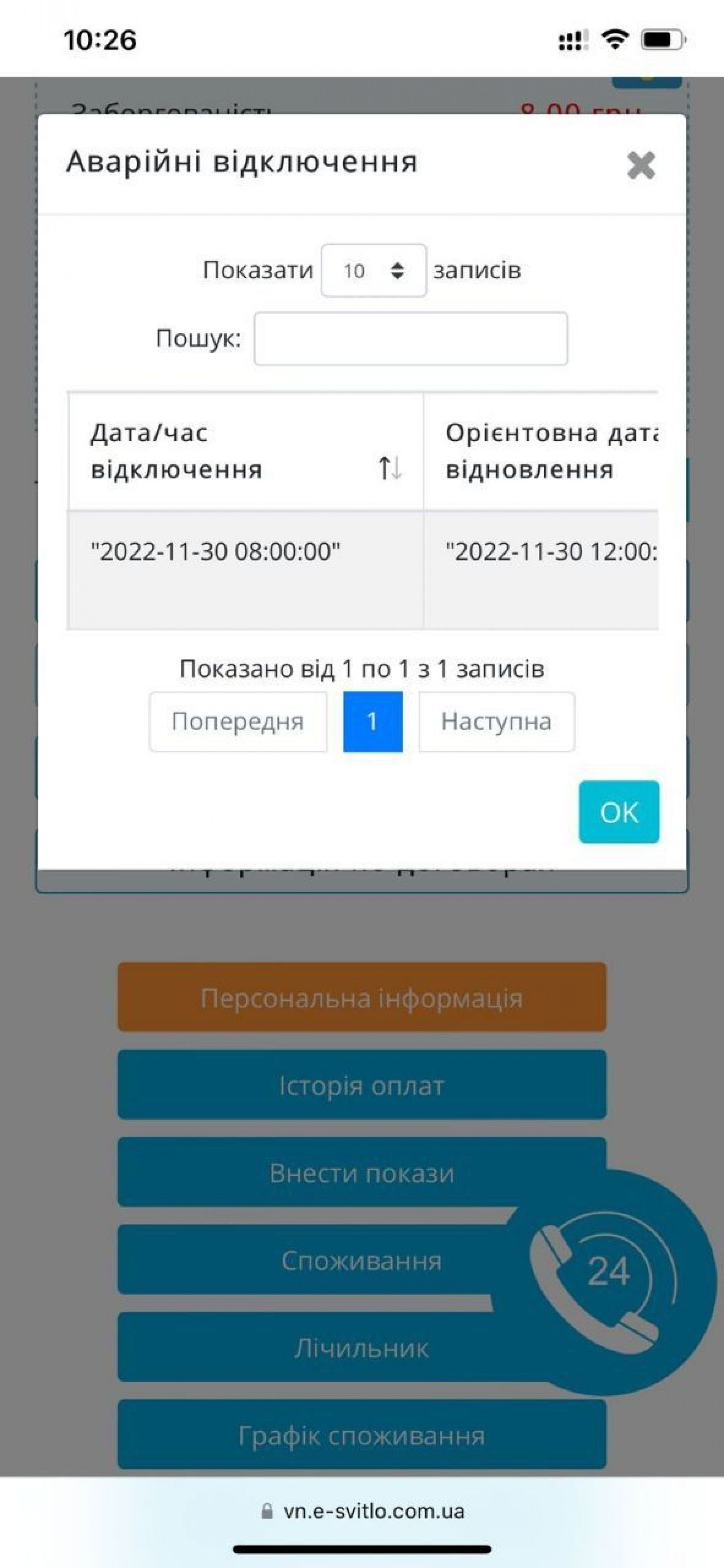 — Ви зможете побачити причину та час запланованого та фактичного відключення електроенергії, — кажуть у Вінницяобленерго. — Працює в тестовому режимі.