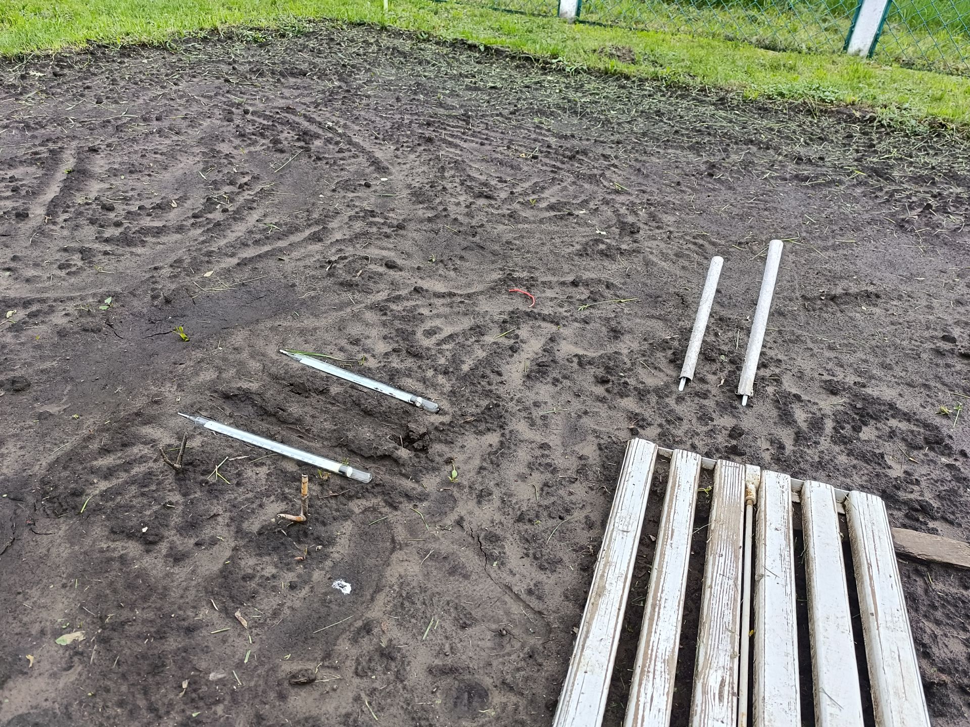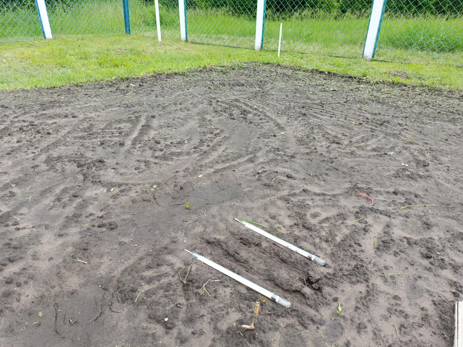 Коли працівник метеостанції виходить на майданчик, першочергово він йде в самий кінець, до прямокутної ділянки, де відкритий грунт. Тут встановлені термометри.