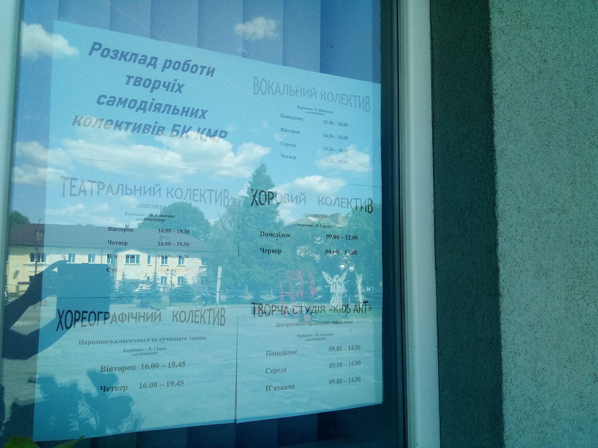 Розклад роботи гуртків та контакти керівників можна знайти на вікні Міського будинку культури.