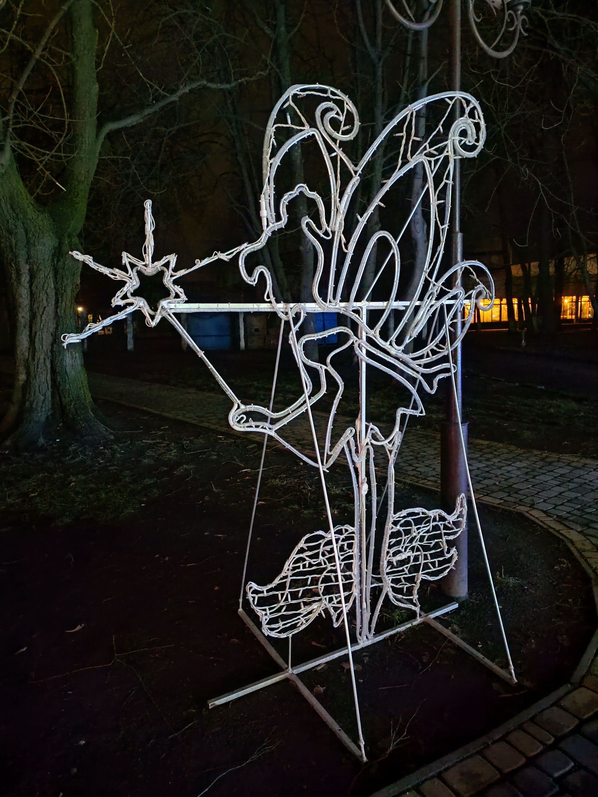 Довкола центральної частини парку виставили металеві фігури фей та подарунків, а також фігури популярних мультяшних героїв.