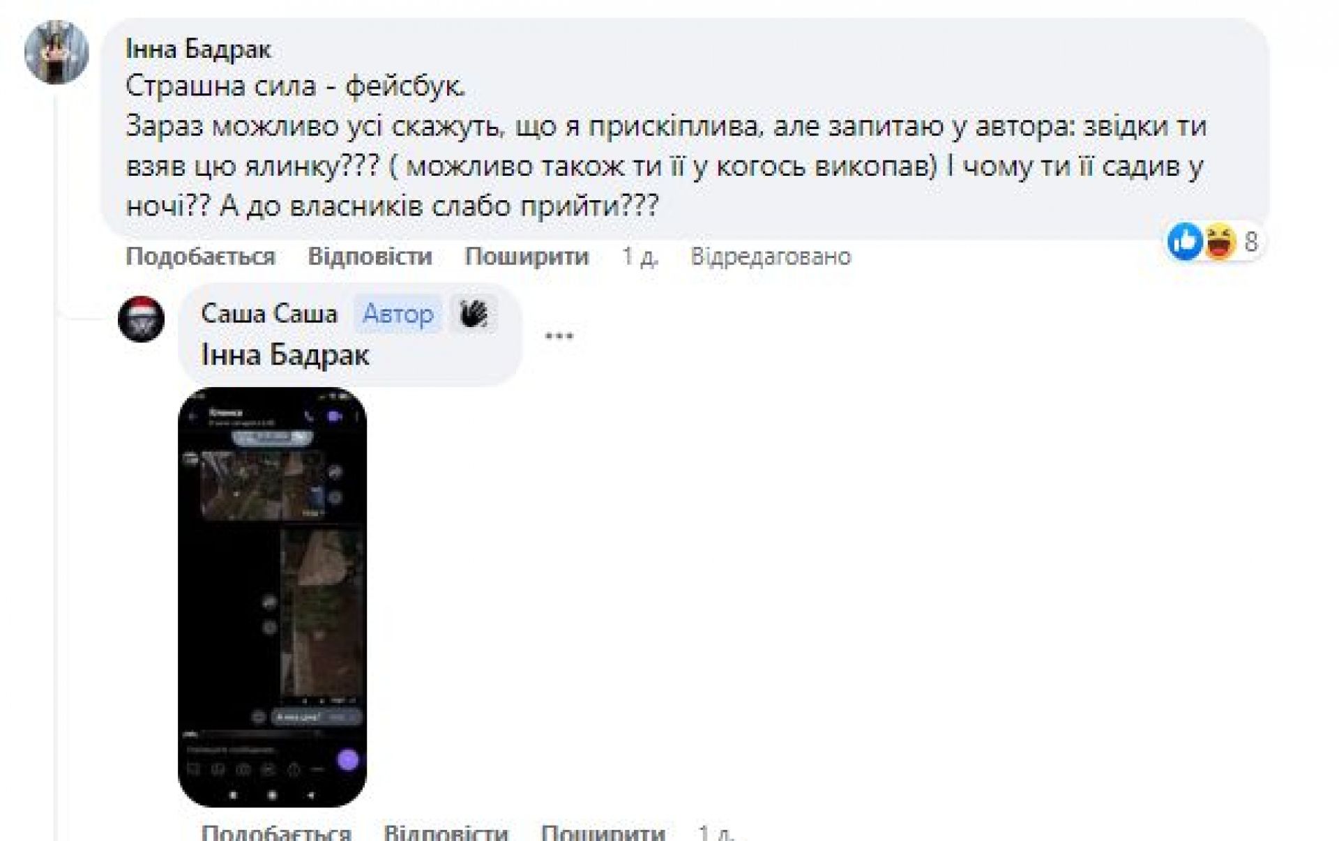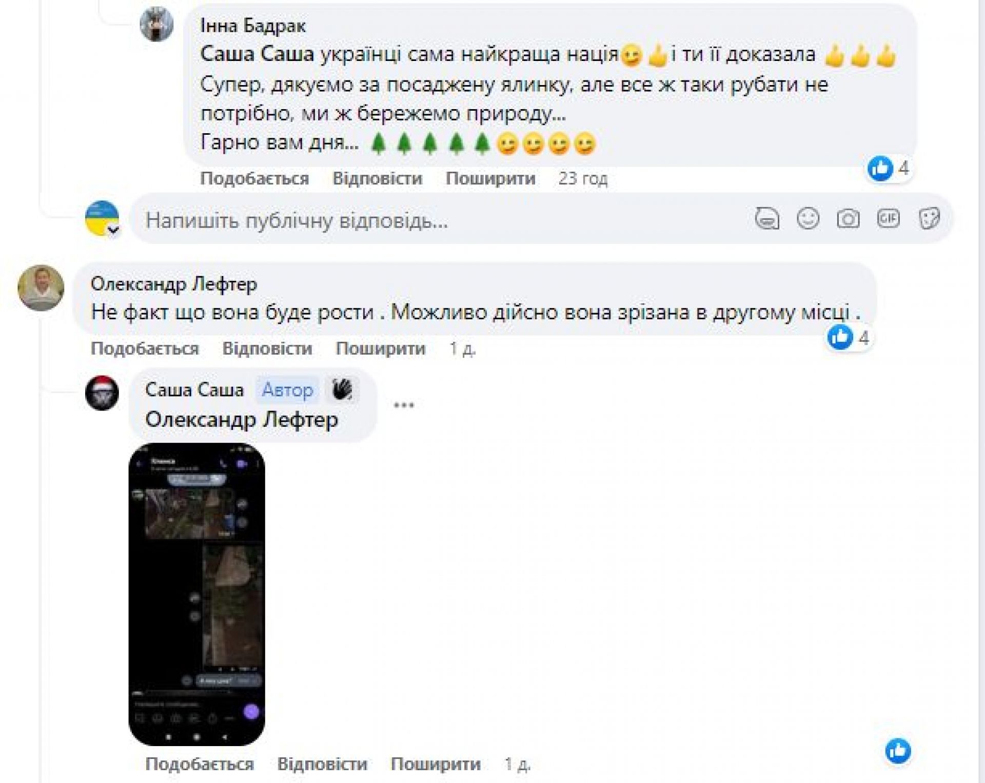 «Людмила Яроменко, ялинка висаджена, 2.01.2023р. Я її зрізав, я і посадив!»