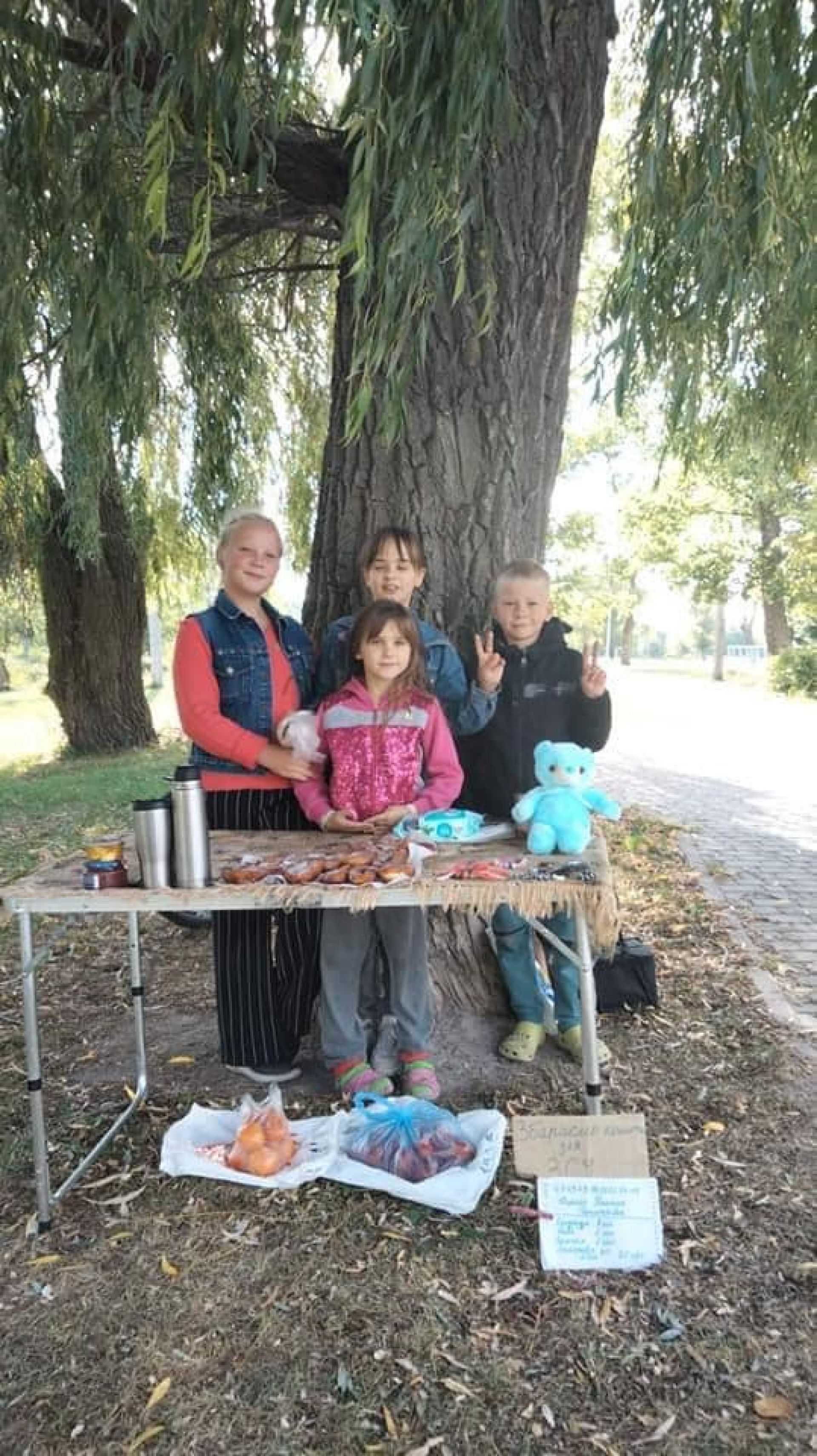 Днями група маленьких волонтерів облаштувавши власну крамничку. Назбирали 1388,60 грн та принесли ці кошти для потреб наших захисників