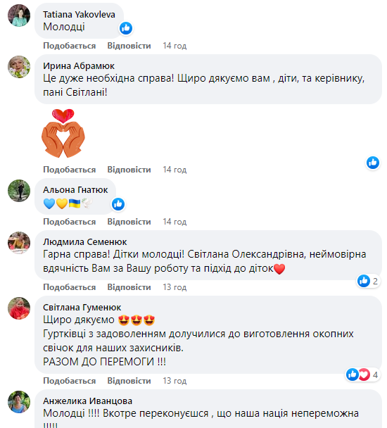 Так, там пишуть, що керівник гуртка «Сувенір» Світлана Гуменюк разом зі своїми вихованцями виготовляють окопні свічки для наших воїнів