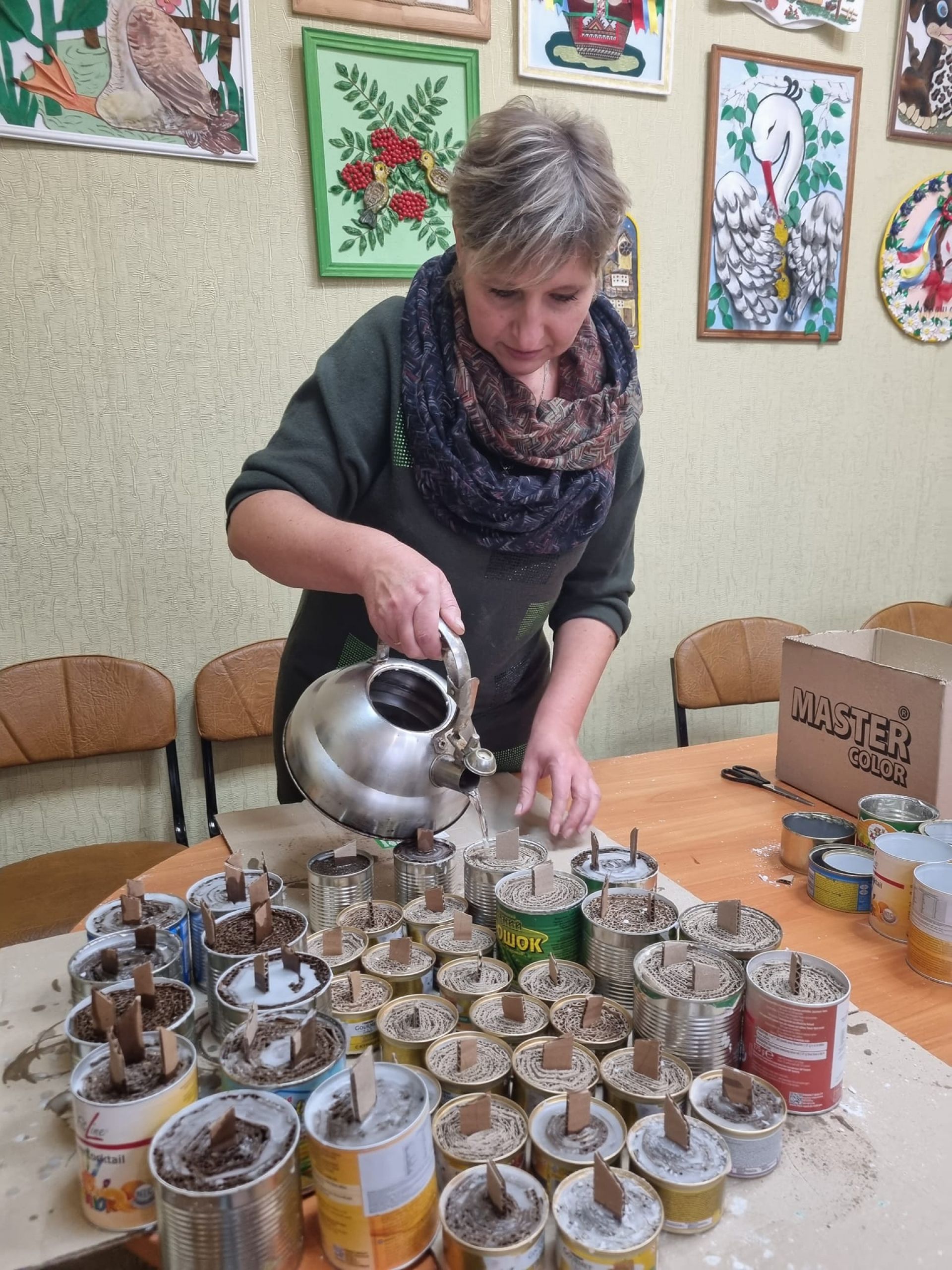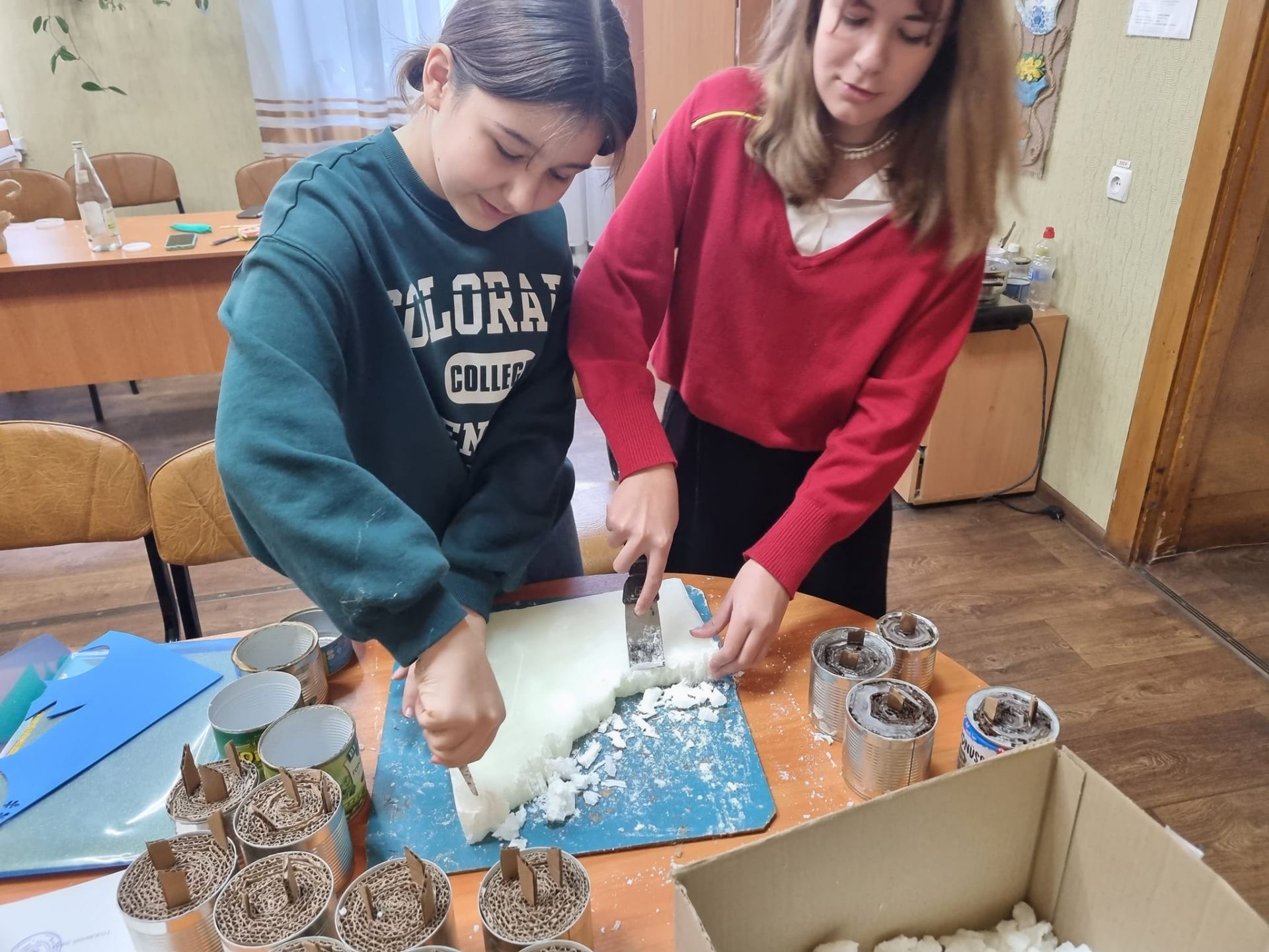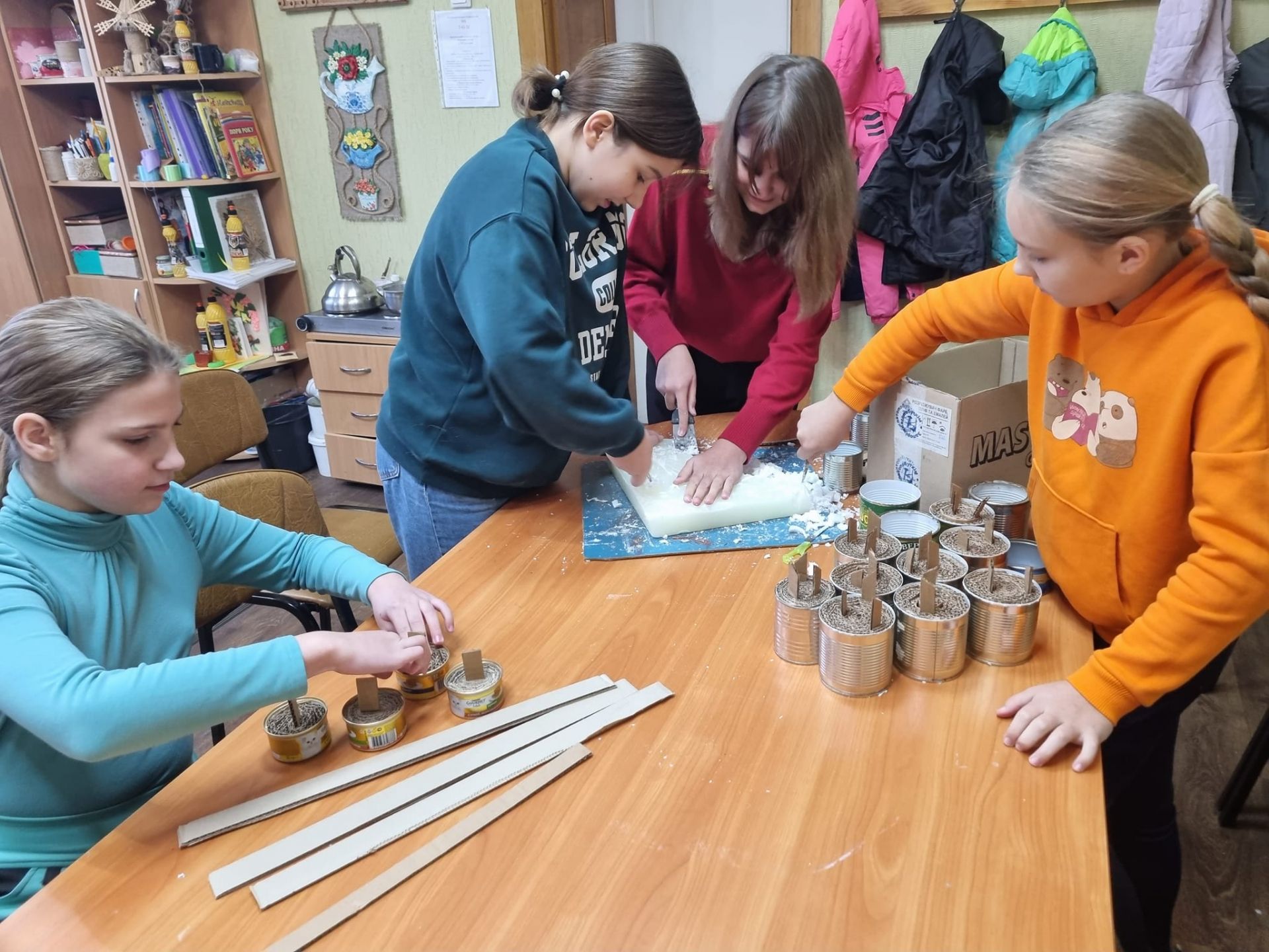 Разом з тим вихованці гуртка «Школа лідерів» разом зі своїм керівником Olha Tkachuk теж виготовляють окопні свічки для наших дорогих захисників.