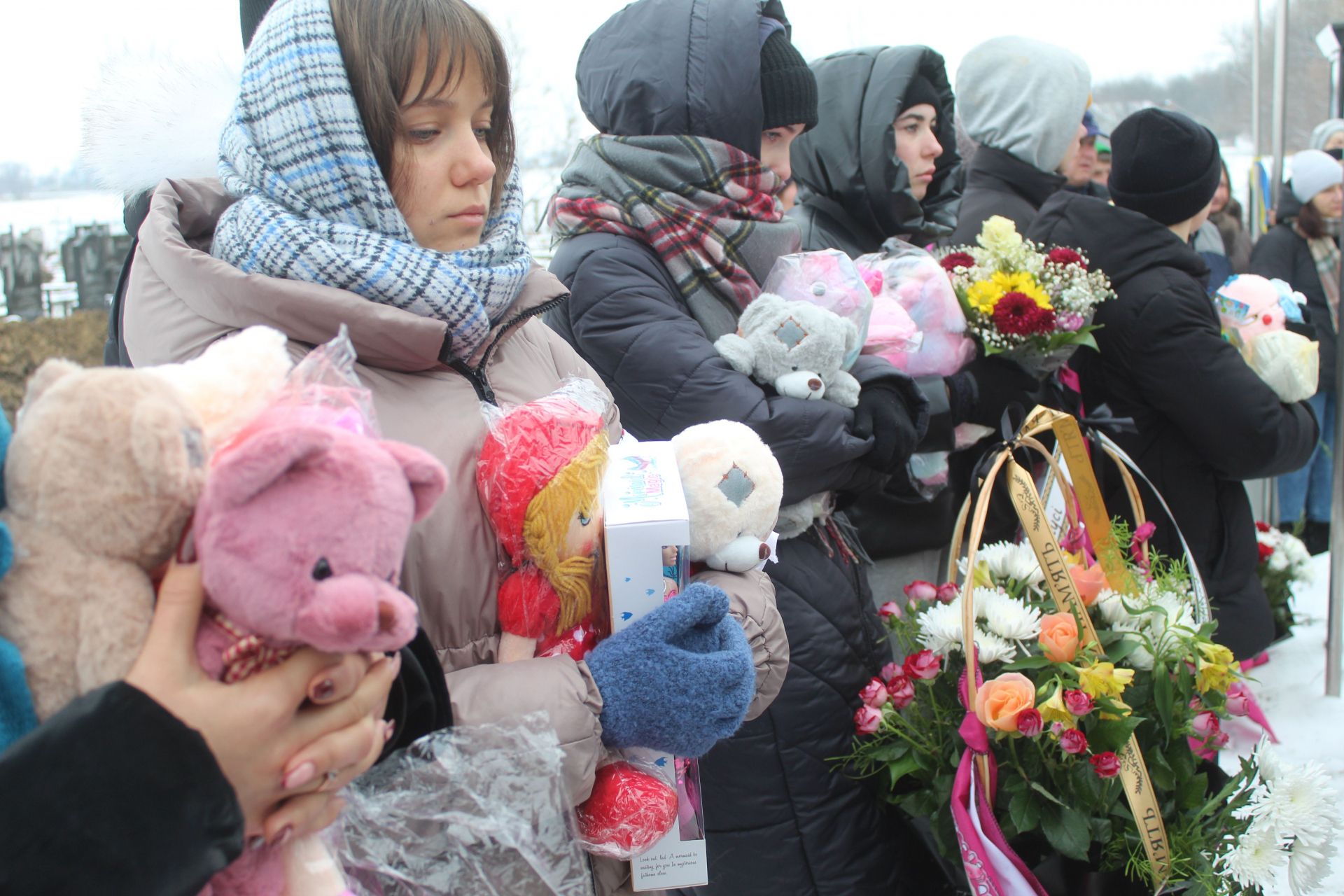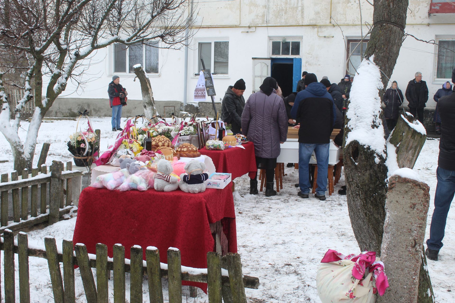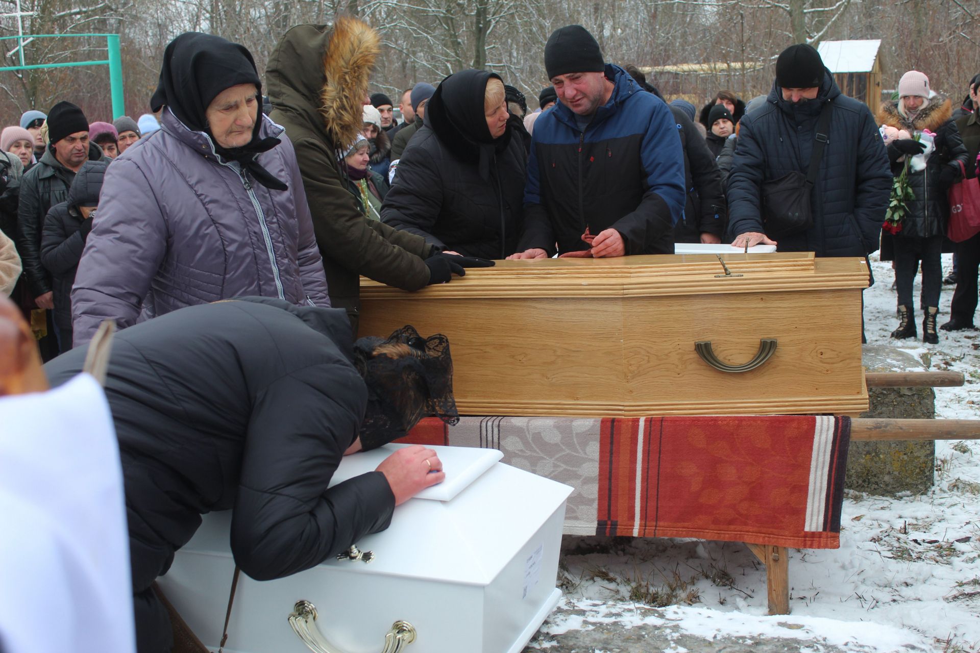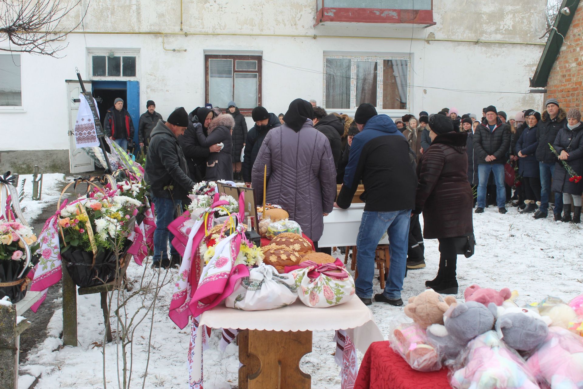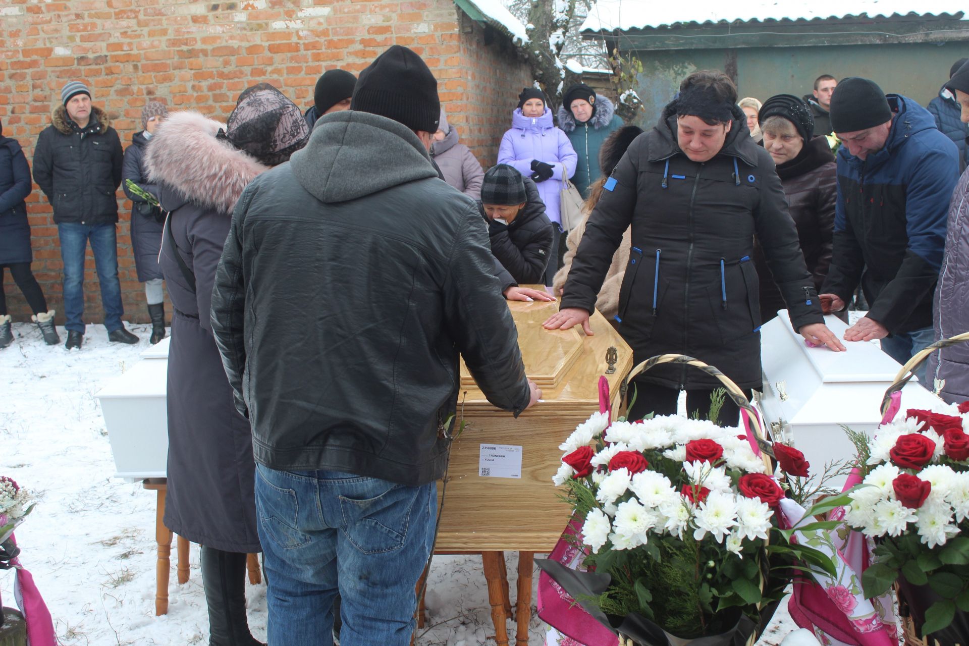 Священник Микола Волохатий провів заупокійну молитву і з покійними стали прощатися. Біля труни Юлі виросла гора квітів, а біля Маши і Даші — гори дитячих іграшок.