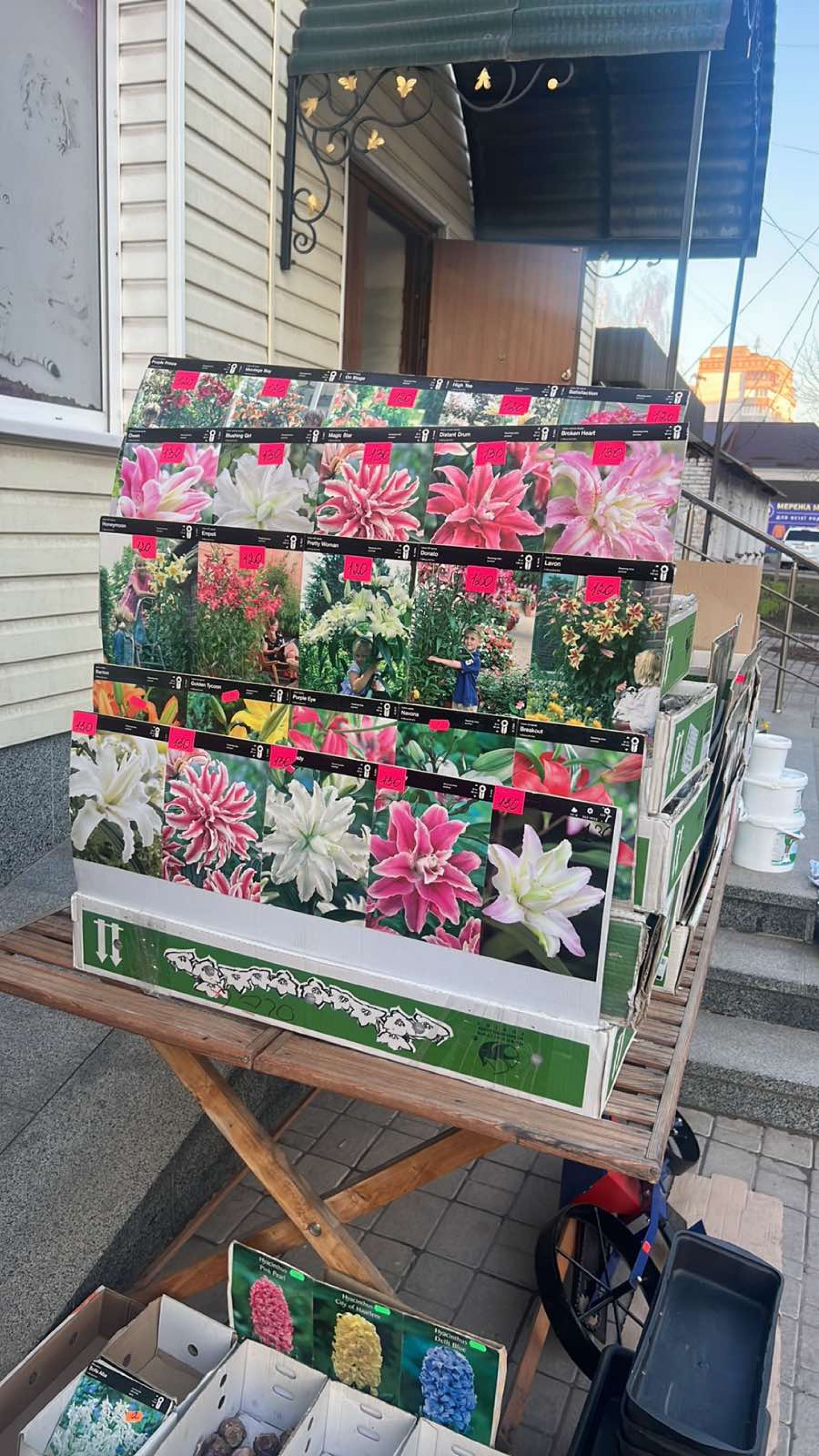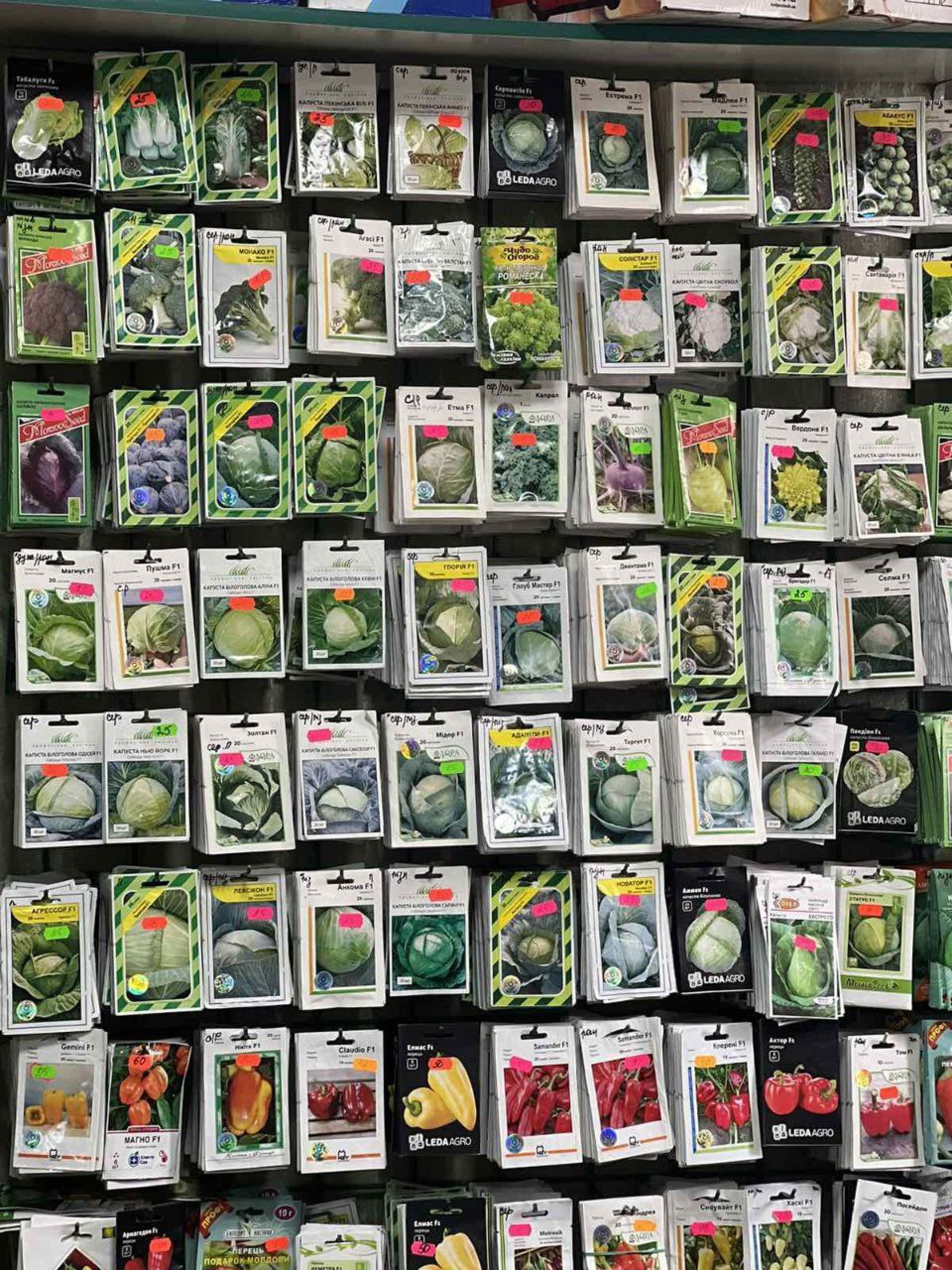 Що стосується квіткового насіння, то можна вибирати однорічні (петунії, левиний зів, календулу), дворічні (віолу, примулу, рожу), багаторічні (іберис, анемону, фрезію, дельфініум), цибулинні (тюльпан, лілію, нарциси), кімнатні (герберу , бегонію, мімозу). Список можна продовжувати ще дуже довго. Але для кожної господині тут знайдуться свої квіти. Варто також додати — в магазині є композиціі для наших захисників, штучні квіти, букети, зріз.