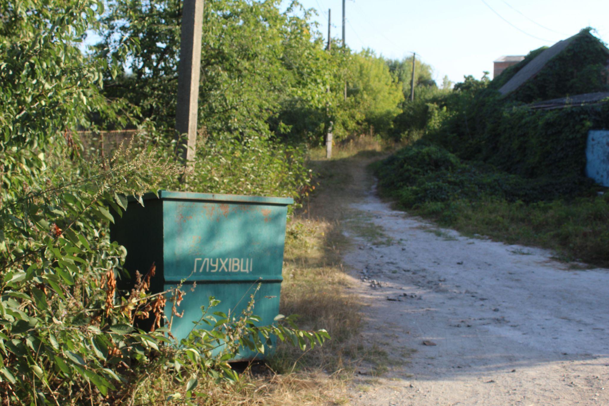 В Глухівцях впало у вічі, що в приватному секторі на околиці села стоять сміттєві баки. Коли захотів господар, тоді й викинув сміття і не переживає, що його виставлений пакет роздеруть собаки.