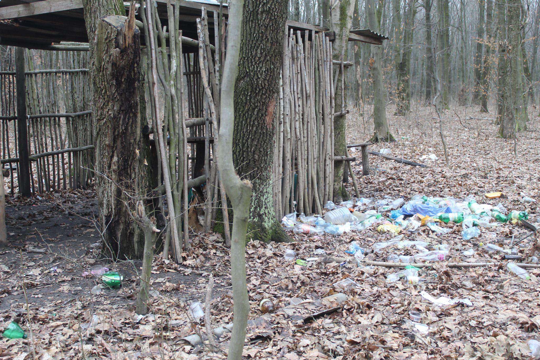 А поруч з альтанкою викидають сміття. Сміттєвих баків на Залізничному може десь і не вистачає, але в районі лісу їх достатньо. Комусь просто не хочеться пройти зайвих 50-100 метрів