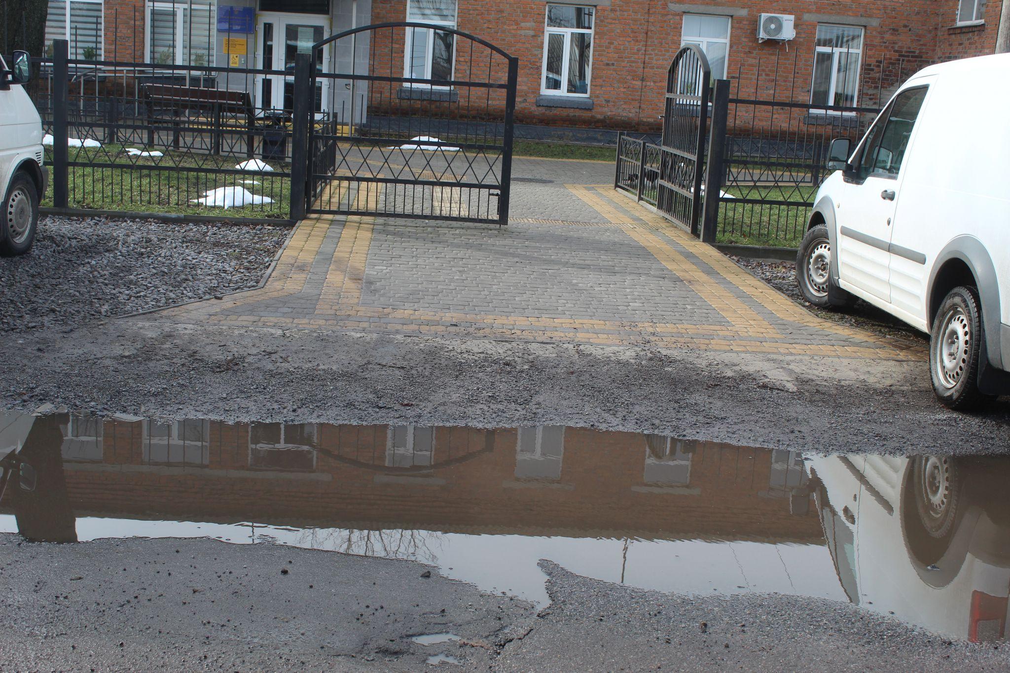 Коли зайшла у нас мова про калюжі, то біля воріт пенсійного фонду ми спостерігали таку картину. З двох боків стоять автівки. Хоче чи не хоче пенсіонер мусить ступати у воду. Інакше ніяк, перестрибнути калюжу — вже роки не ті.