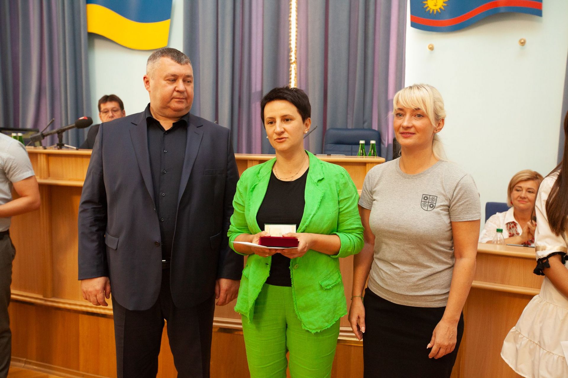 Сьогодні, 26 серпня відбулася чергова 28 сесія обласної Ради. На початку сесійного засідання голова обласної Ради Вячеслав Соколовий та перша заступниця начальника обласної військової адміністрації Наталя Заболотна вручили Почесні відзнаки «За заслуги перед Вінниччиною».