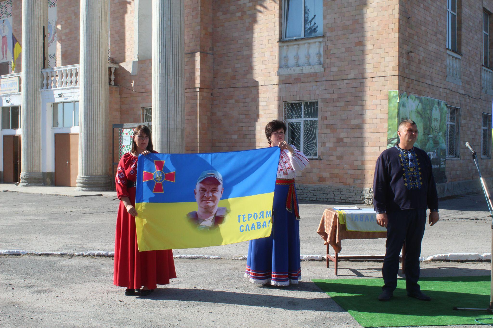 Після представлення кожного загиблого воїна, директор центру культури та дозвілля Глуховецької селищної ради Марія Кулеша та головний спеціаліст відділу Інна Лавренюк розгортали прапор з фото Героя та передавали його