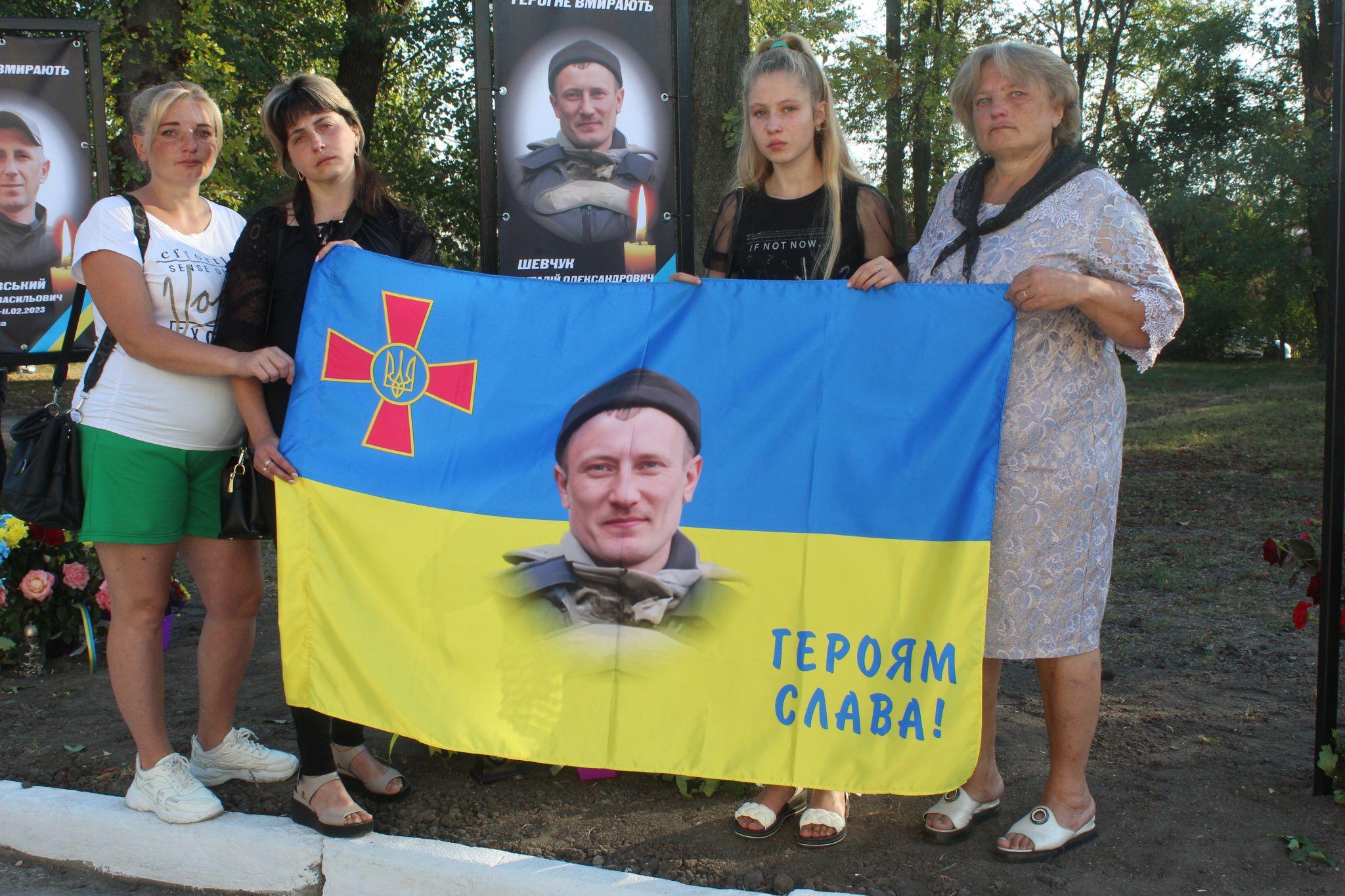 Жителі громади і гості селища, поклавши квіти, стали неквапливо розходитись, вдивляючись в портрети своїх захисників, а родини Героїв ще довго стояли біля стел своїх рідних.