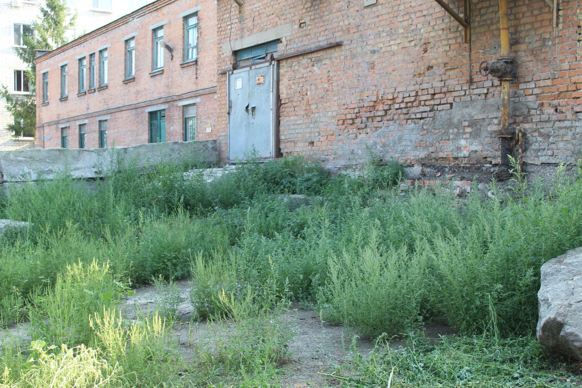 Біля котельні, що на вулиці Володимира Великого, зарослі бур’янів. Одна із чурок, яку планували спалити, через свої габарити не знайшла свого прямого призначення в водогрійці котла, стала кришкою підземної комунікації. Не скошені бур’яни майже в центрі міста могли свідчити, що людська нога тут вже давно не ступала.
