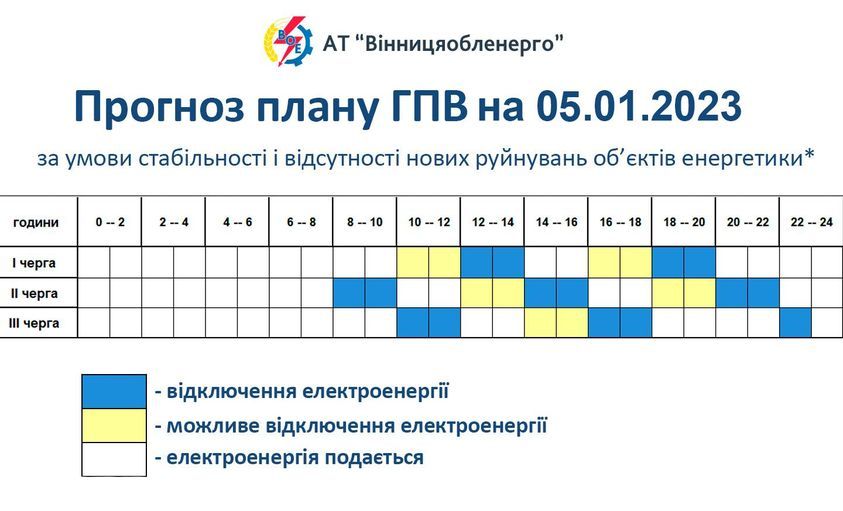 - У Вінницяобленерго опублікували графік погодинного відключення електроенергії на 5 січня 2023 року