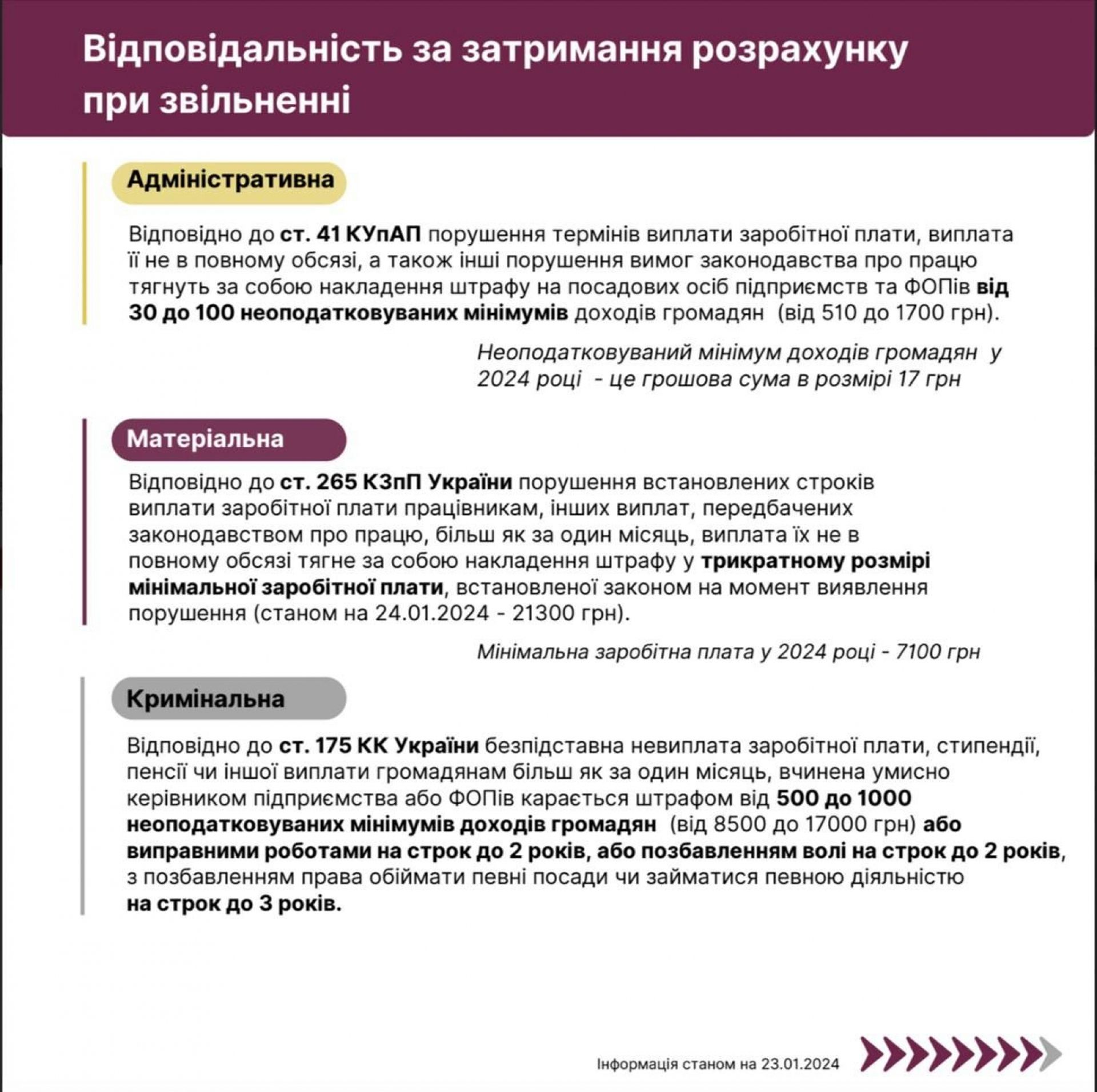 - Яка відповідальність за затримання розрахунку при звільненні?