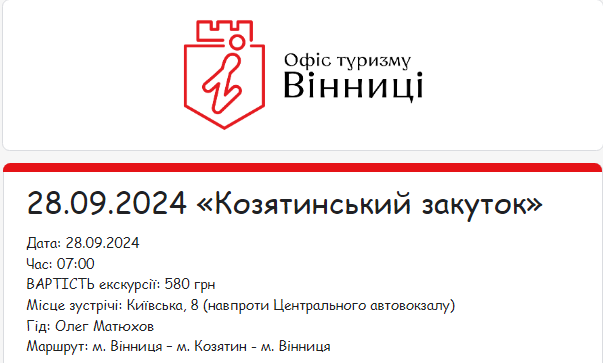 - Офіс туризму Вінниці у співпраці з місцевими гідами й гідесами підготував 13 екскурсій та турів на перший місяць осені.