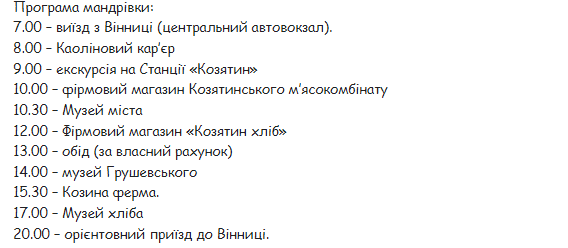 28 вересня – Екскурсійний тур «Козятинський закуток» (Вінниця – Козятин – Вінниця). Гід Олег Матюхов.