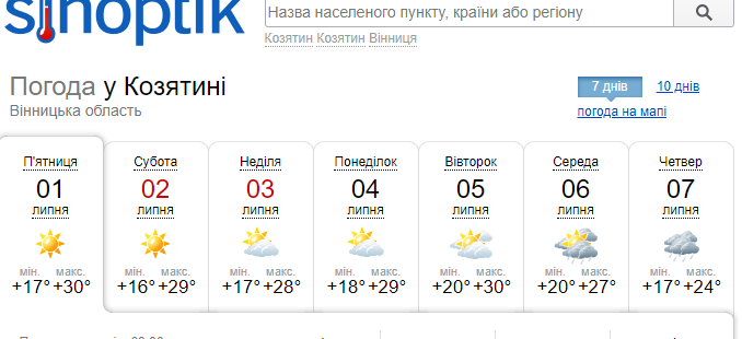 А ось яку погоду обіцяють у перші дня липня у Козятині