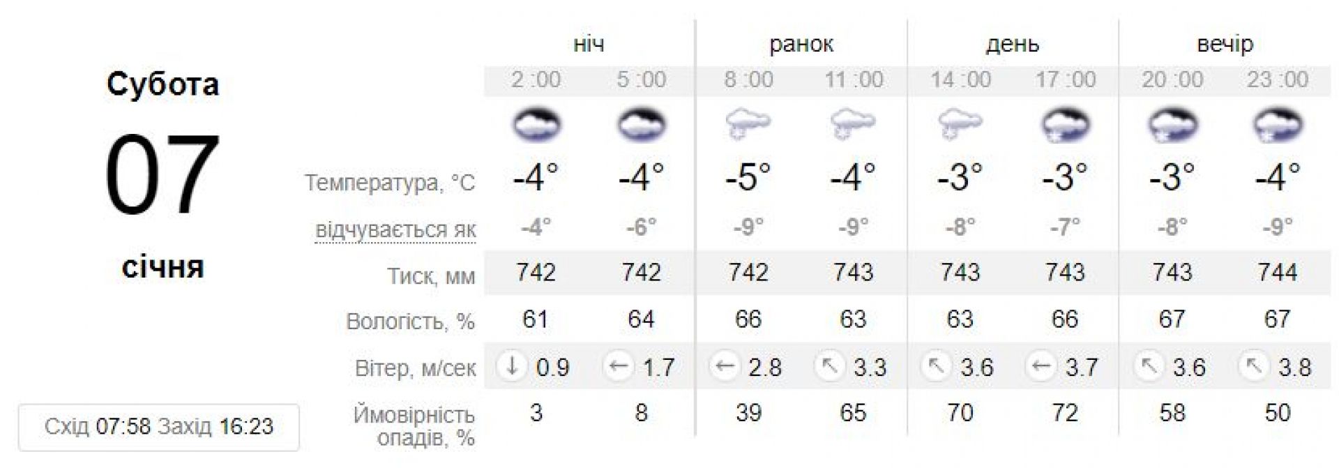Вдень 7 січня трохи потепліє. Переважатиме морозна погода до -9, а от на Заході очікується +5 градусів.