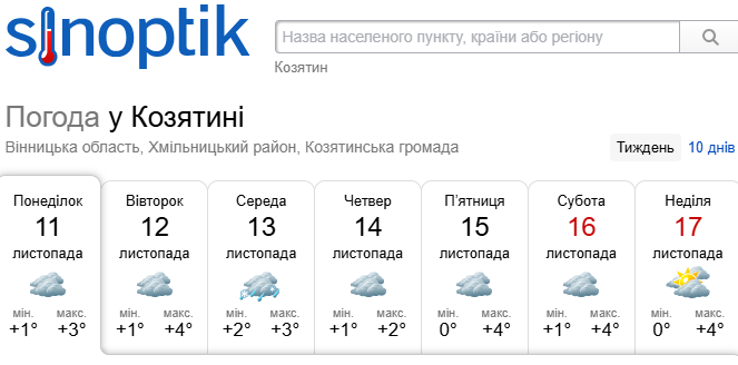 На цьому тижні прогнозують мокрий сніг та дощ: оновлений прогноз погоди для козятинчан