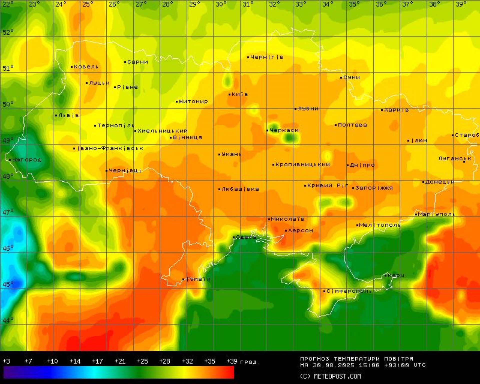 - Протягом дня вівторка на півночі +14+18 градусів, на півдні +23+27 градусів, на решті території України +18+22 градуси. Рвучкий вітер західного походження.