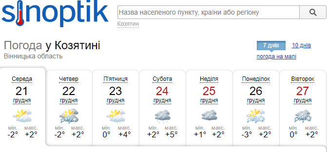 За її прогнозами, у четвер, 22-го грудня в Україні переважатиме тепла погода. Впродовж дня температура повітря становитиме +2+5 градусів, на крайній півночі 0+2 градуси, у південній частині +4+9 градусів, в Криму до +11.