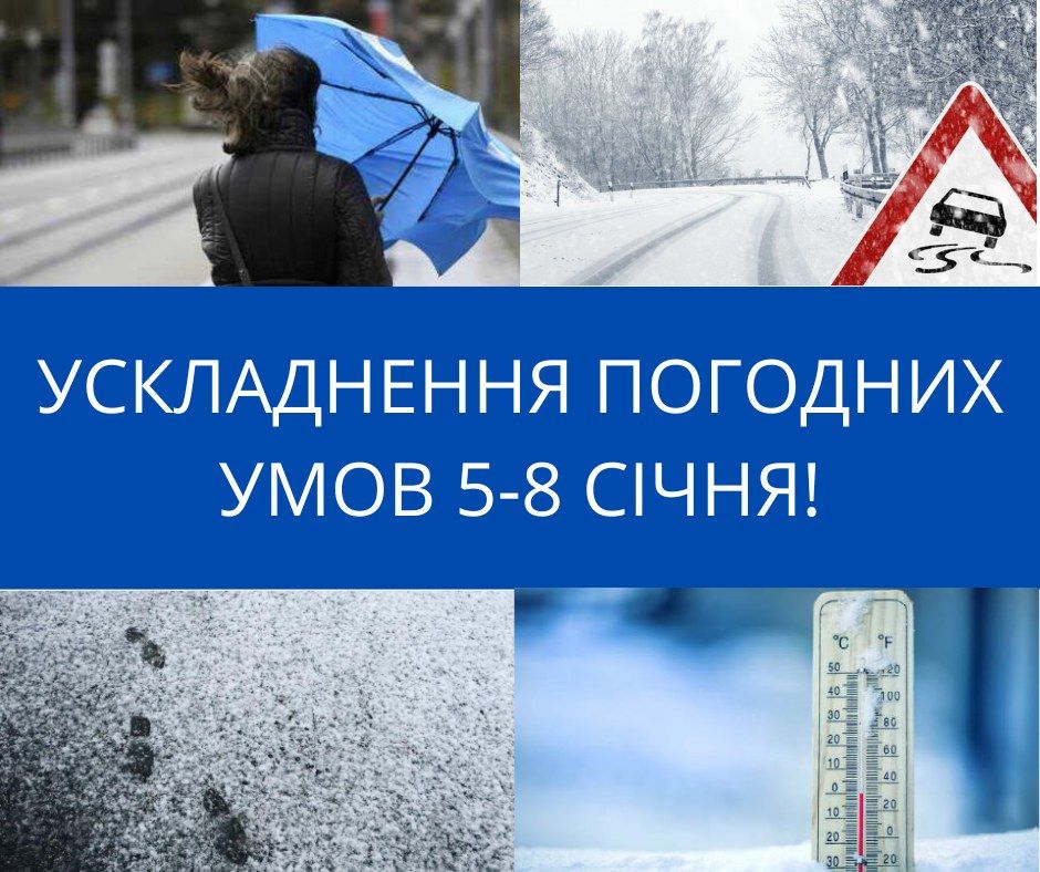 7-8 січня зниження температури вночі 5-10° морозу, вдень 2-7° морозу. Ускладнення погодних умов 5-8 січня відповідає 1 рівню небезпечності, жовтий.