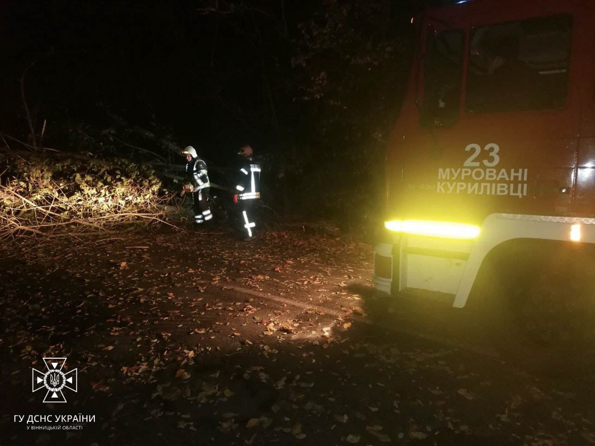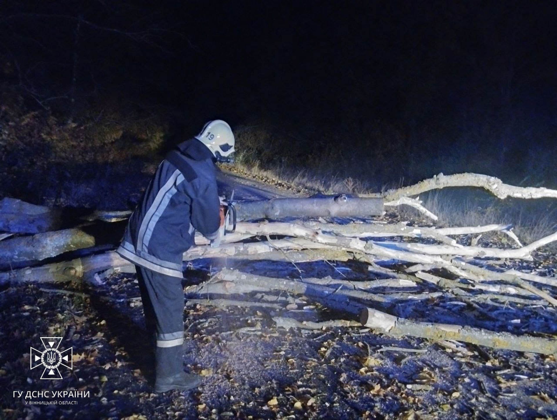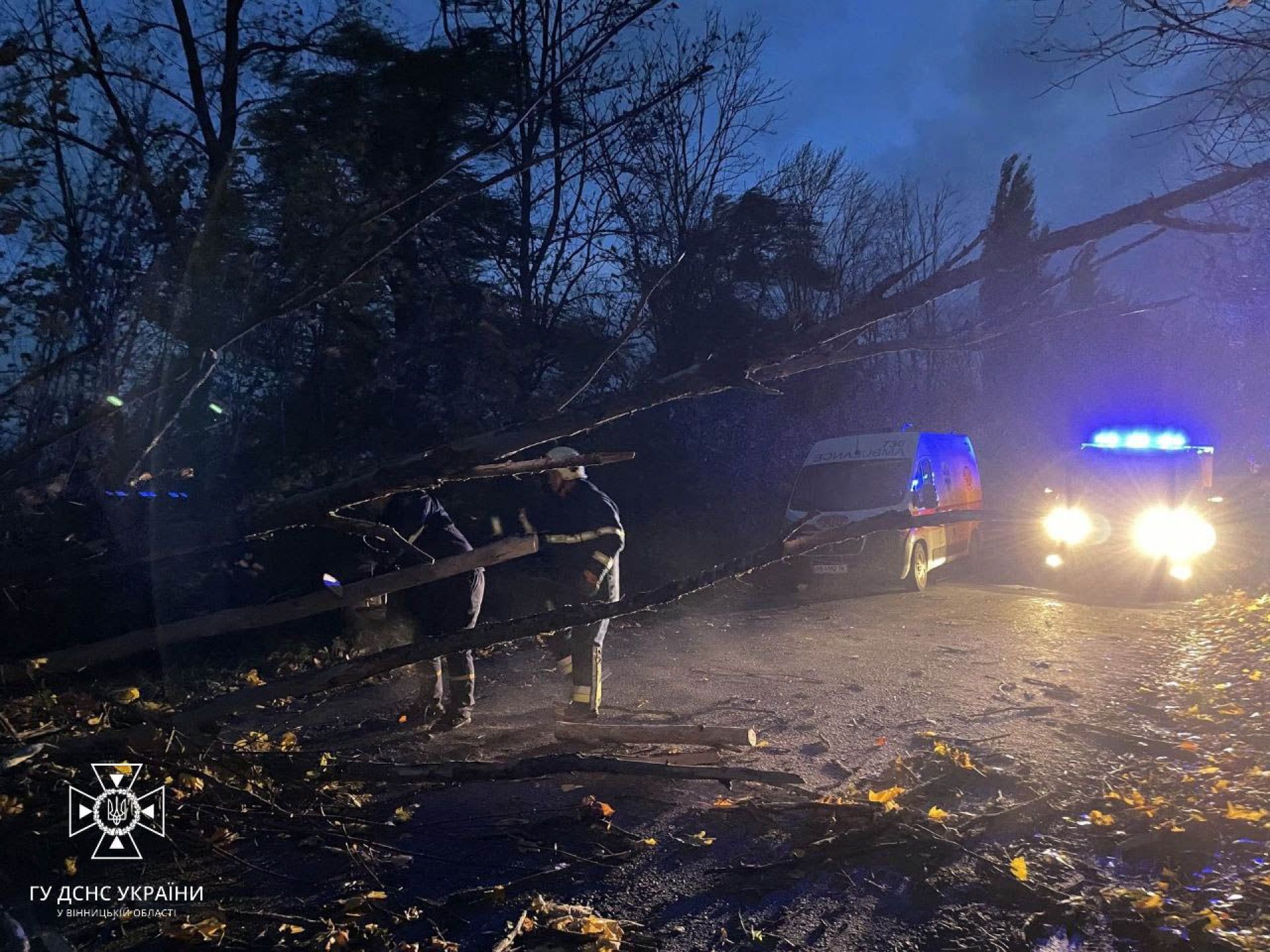 В ніч з 27 на 28 жовтня, на території області внаслідок шквального вітру на проїжджі частини доріг впали дерева. Про це інформує Головне управління ДСНС України у Вінницькій області.