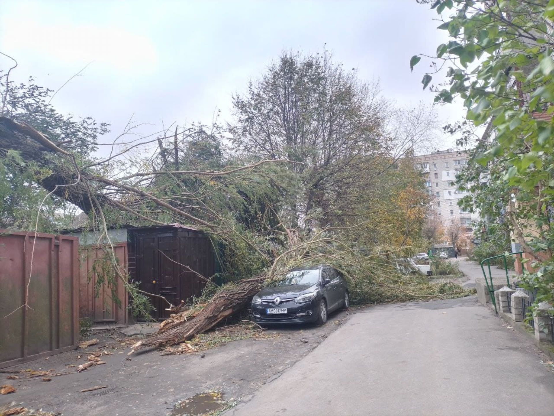 Поваленні дерева на машини та обірвані електролінії: сильний вітер наробив лиха в області