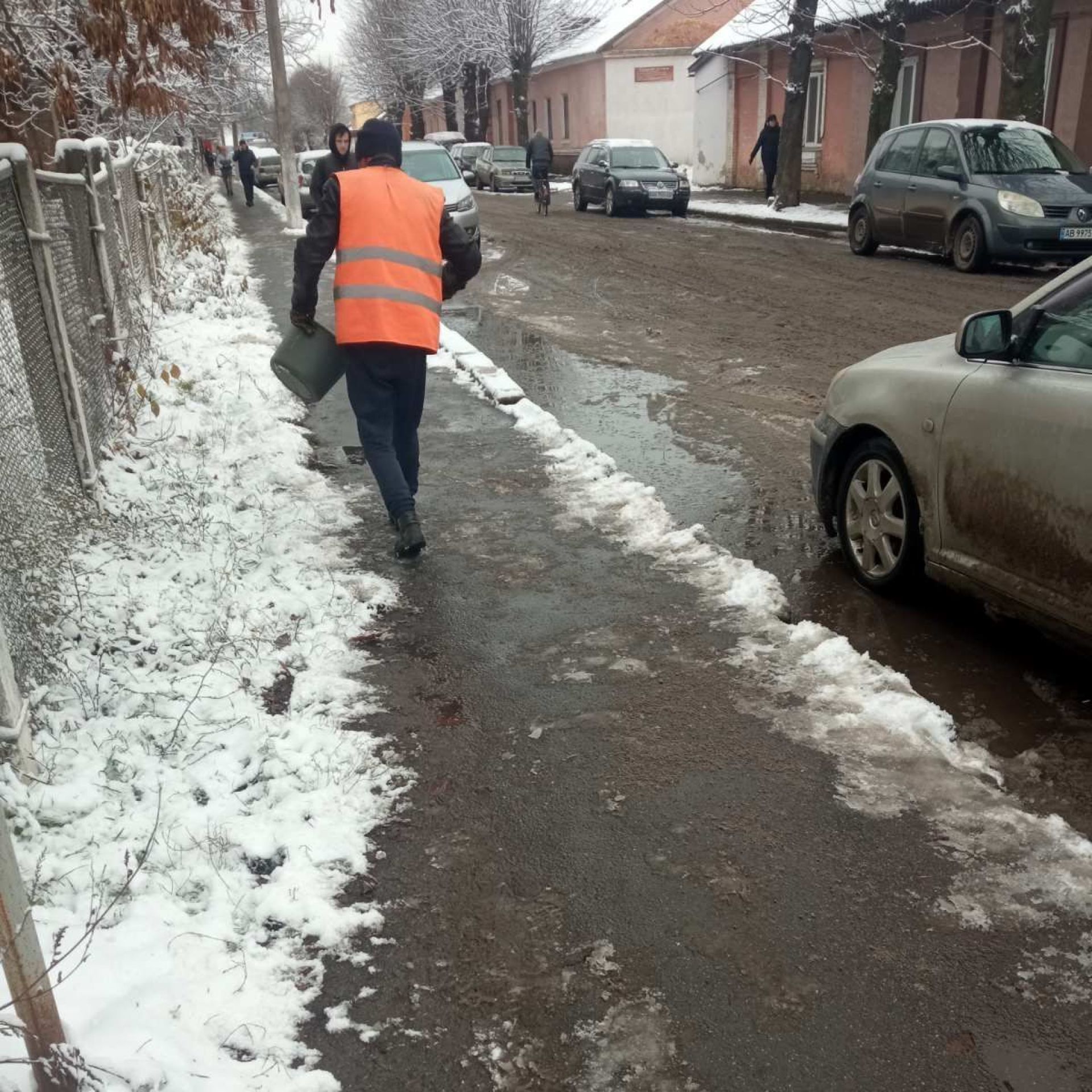 Також працівники проінструктовані та забезпечені необхідним інвентарем. Вони готові очищати від снігу та посипати тротуари задля безпечного пересування громадян.