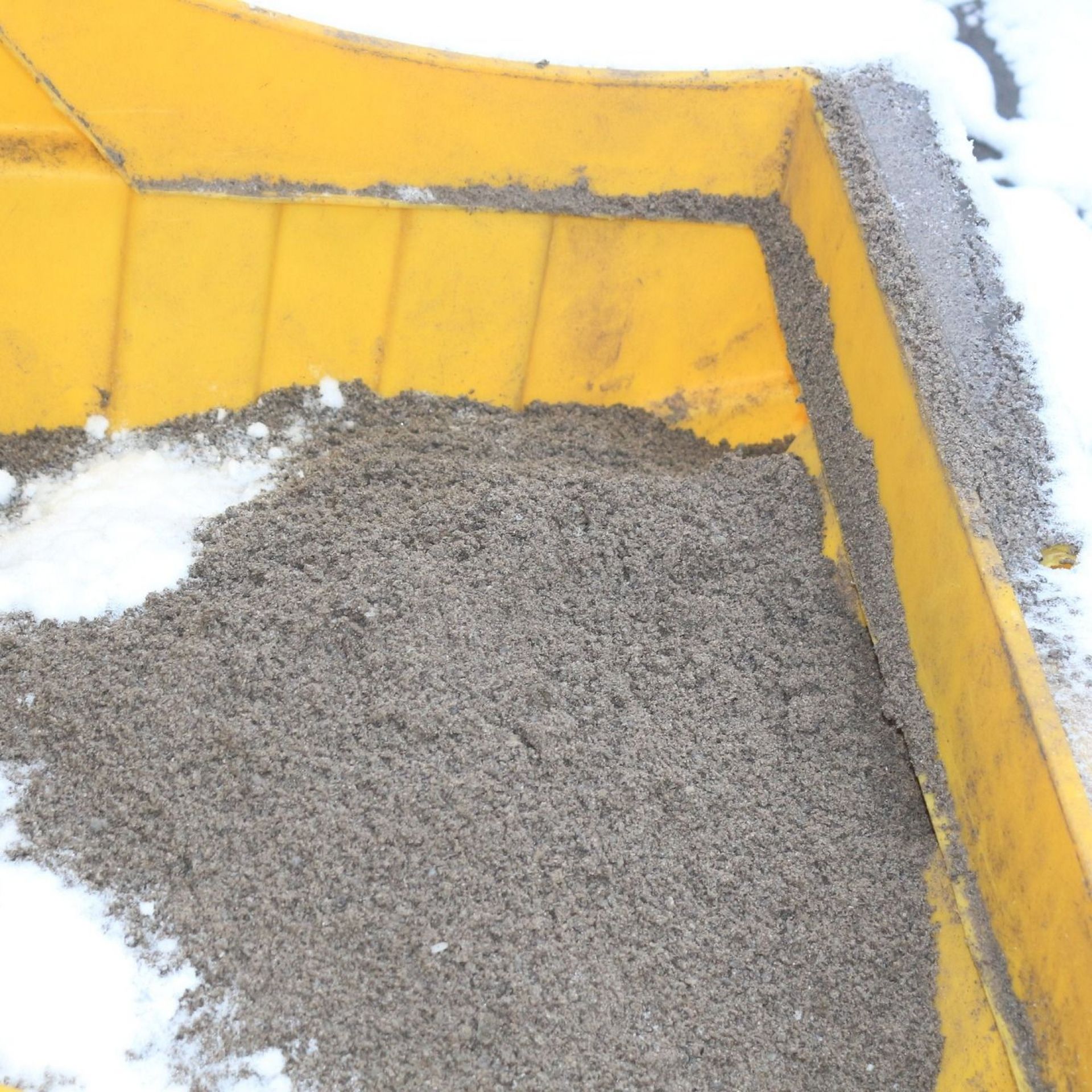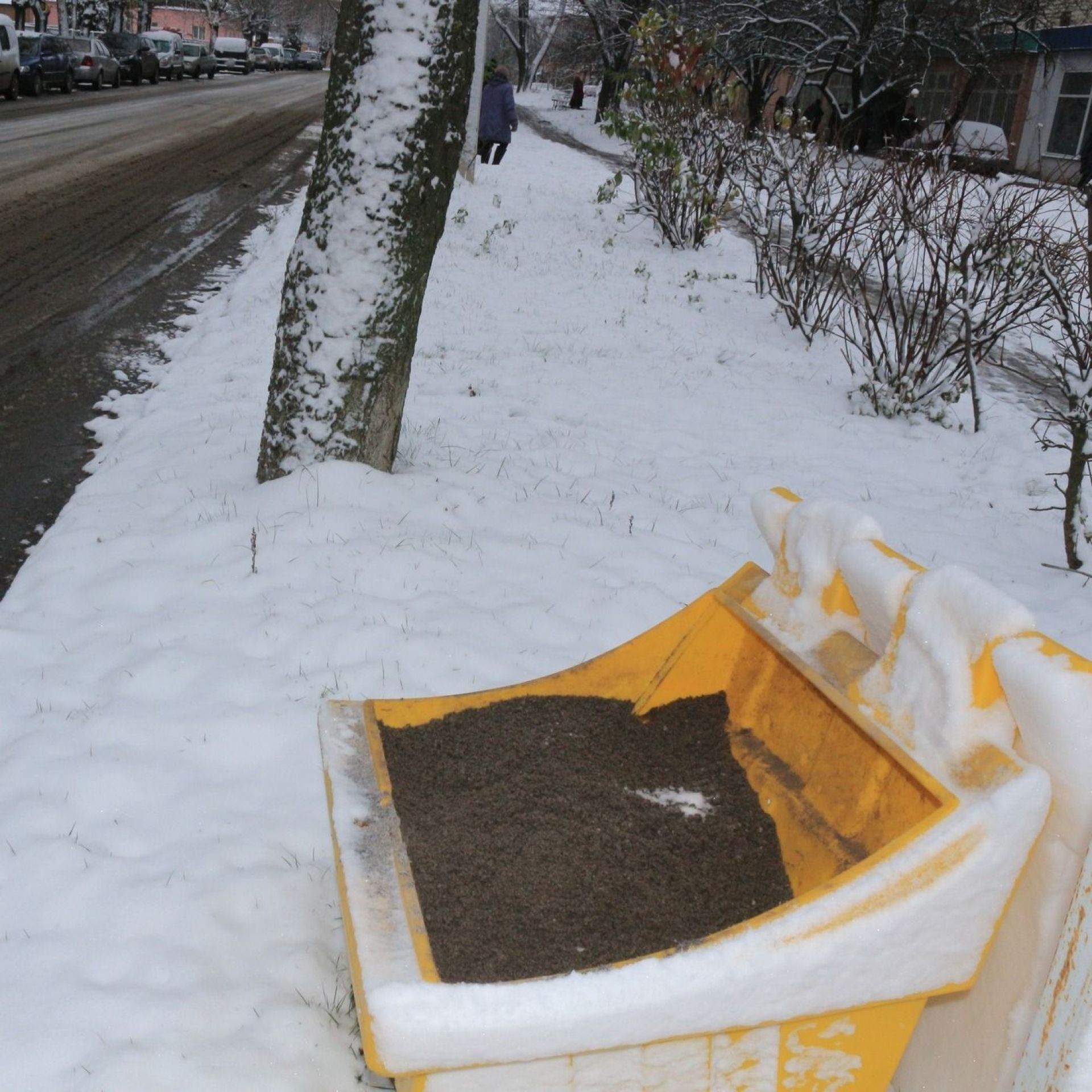 - по місту біля перехресть розставили ємності наповнені сипучою сумішшю.