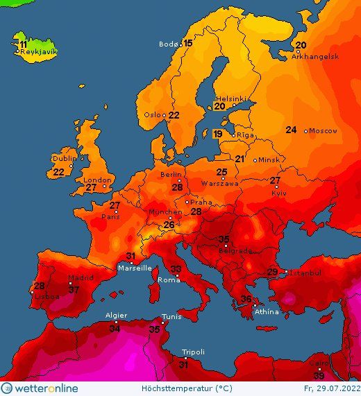 — Скрізь - висока температура повітря. У південній частині України частина цього спекотного орнаменту буде ніжнішою, попри іспансько-грецькі +35+37 градусів, потрапить у межі +30+33 градусів, — йдеться у дописі