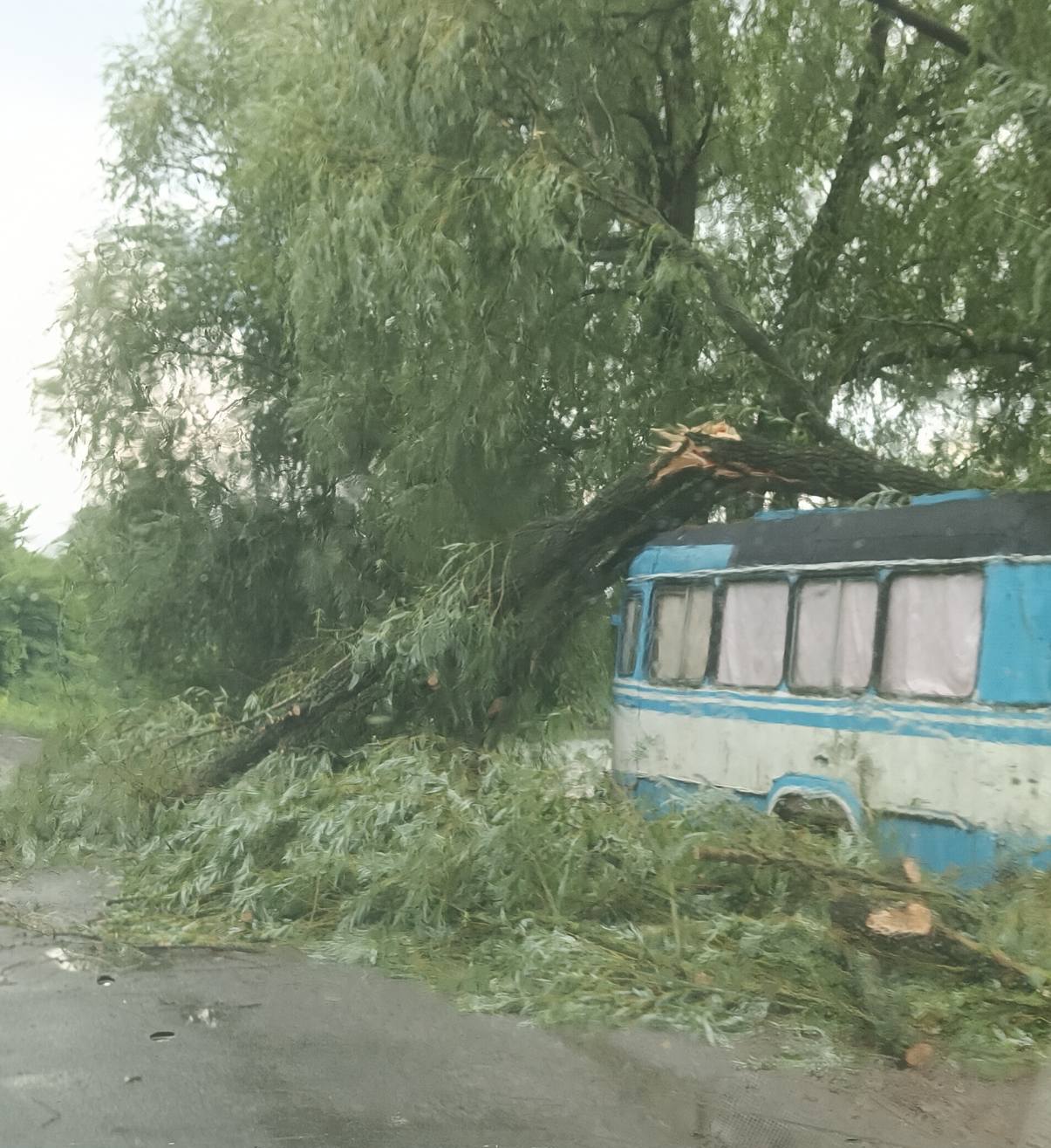 Гілки просто всипали дорогу, а на під'їзді до села велетенське дерево перегородило всю трасу. По обидві сторони утворились пробки. Застряг і пасажирський автобус, який їхав з Сошанська на Козятин. Люди повиходили з автівок і взялись за телефони — викликали місцевих жителів на підмогу.