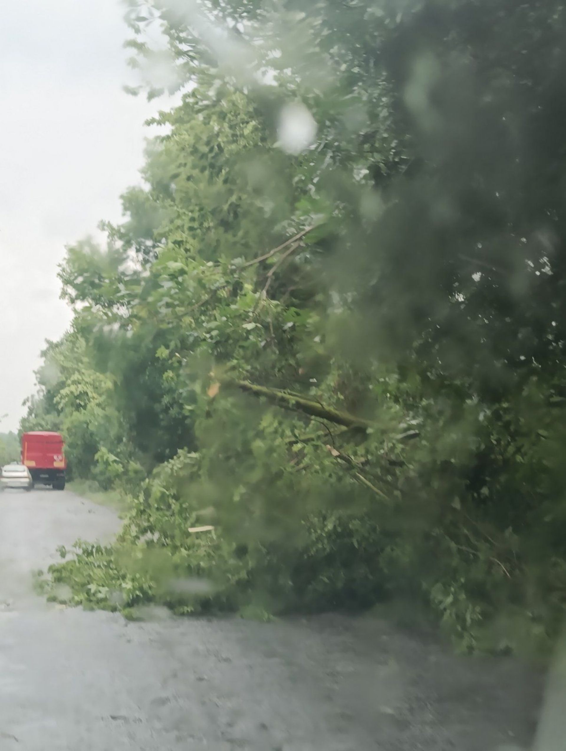 Та вода після дощу благополучно зійшла. А от вітер наробив шкоди. Ми стали свідками деревопаду на трасі до Журбинець. Він почався ще від Журбинецької поворотки. Та це й не дивно, адже обабіч автошляху дуже багато старих та аварійних дерев.