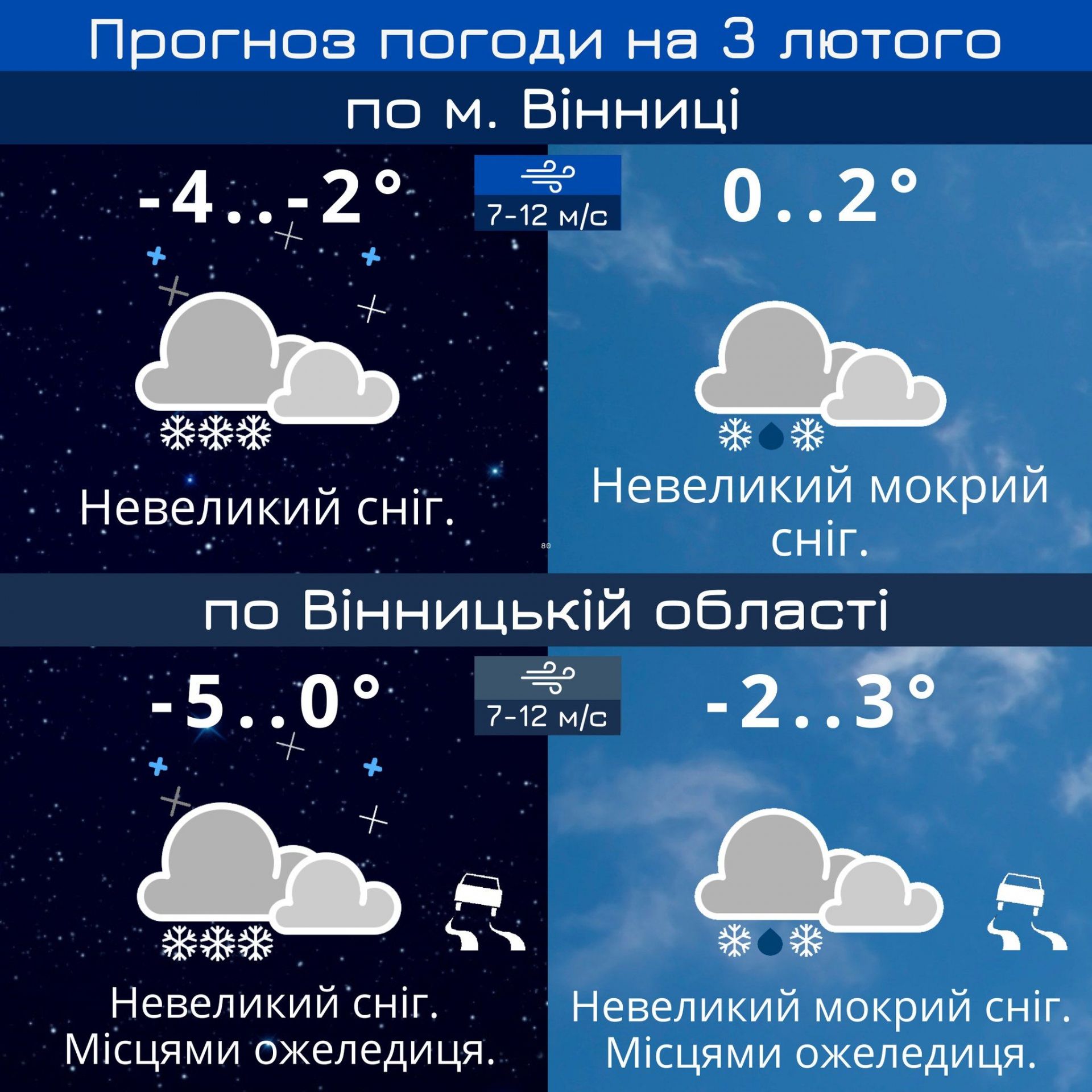 Тим часом Вінницький обласний центр з гідрометеорології детально розповів про температуру повітря на 3-7 лютого.