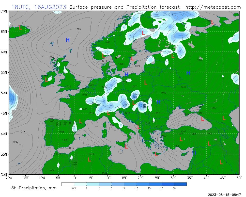 - Завтра, 16-го серпня в Україні очікується сонячна суха погода із максимальною температурою повітря +29+33 градуси. Надвечір є ймовірність локальних дощів із грозою на Закарпатті, у Чернівецькій області та у південних районах Івано-Франківщини.