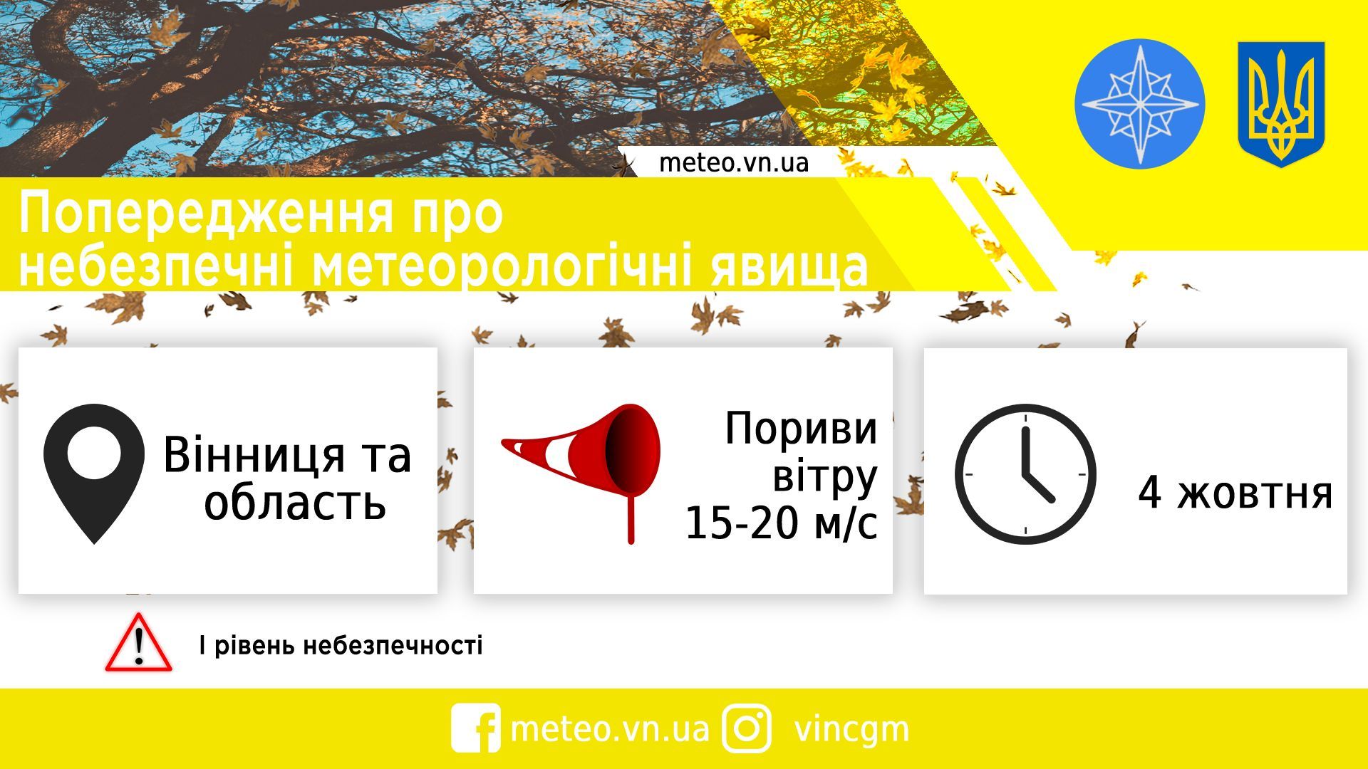 - Синоптики дали свіжий прогноз погоди на завтра, 4 жовтня. Прогнозують, що буде без дощів, проте з рвучким вітром