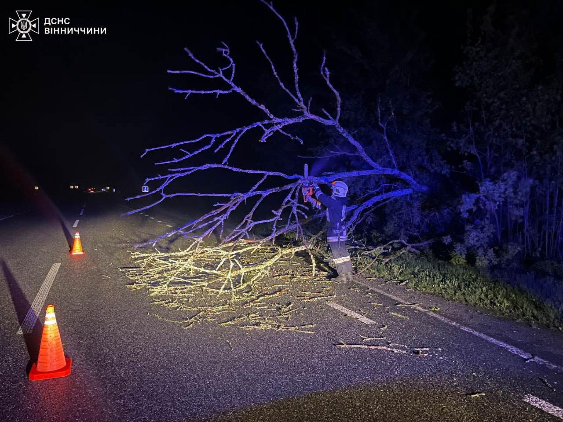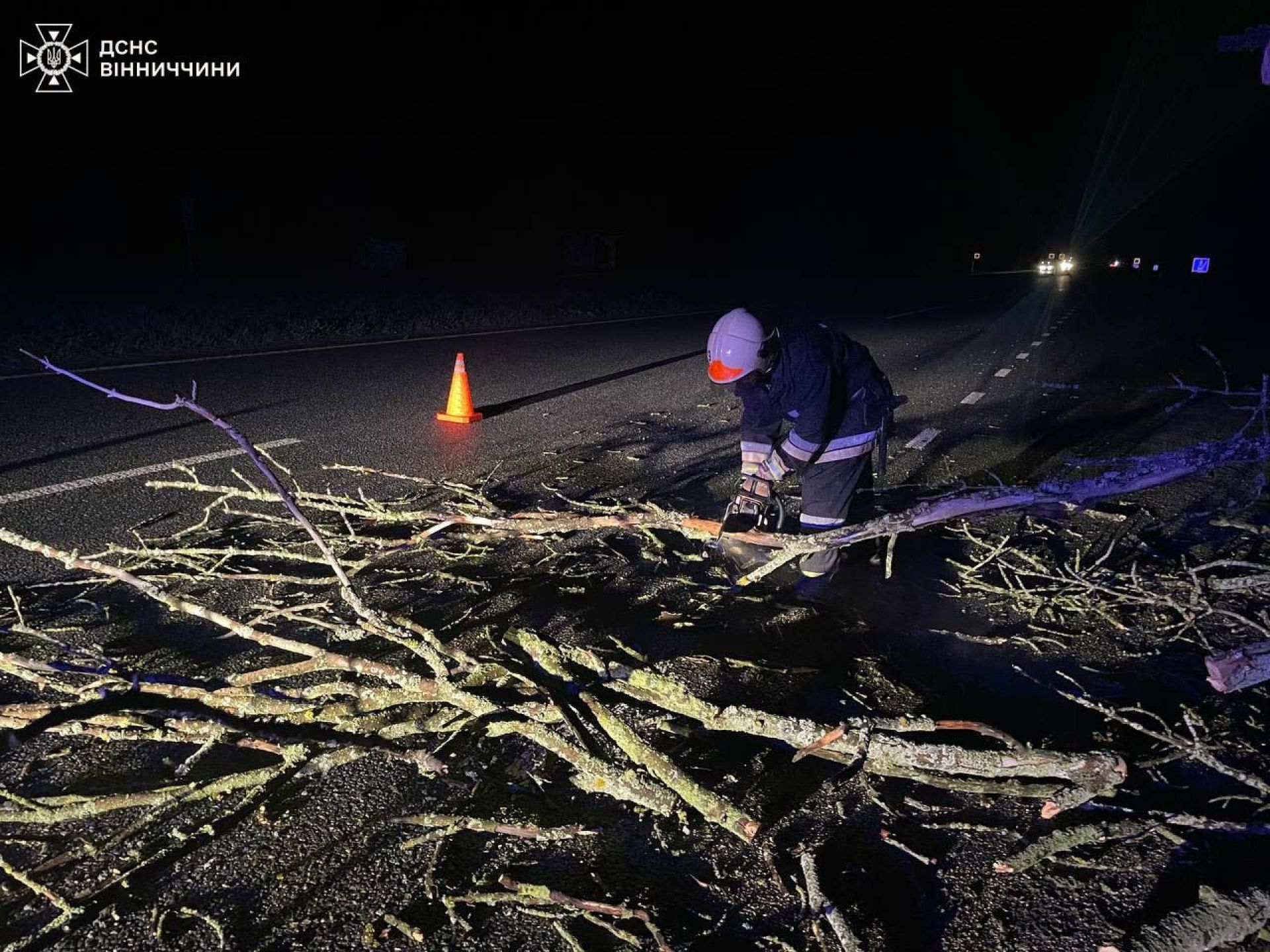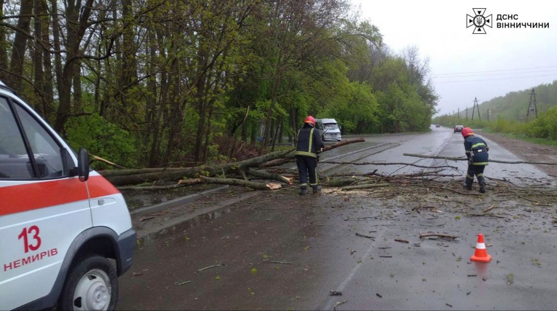 Також пізнього вечора, 21 квітня, поблизу с. Весела Хмільницького району рятувальники прибрали повалене вітром дерево, що впало на проїжджу частину дороги.