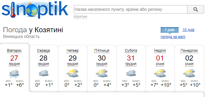 Завершення старого року і початок нового обіцяють бути теплими, без серйозних опадів, з температурою повітря +3+9 градусів.