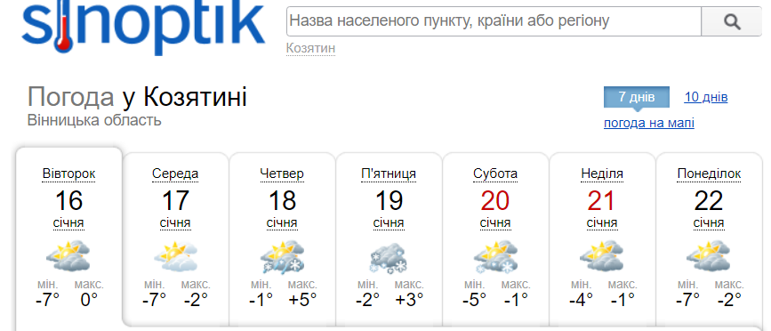 - ️Температура вночі 6-11° морозу, вдень 1-6° морозу.