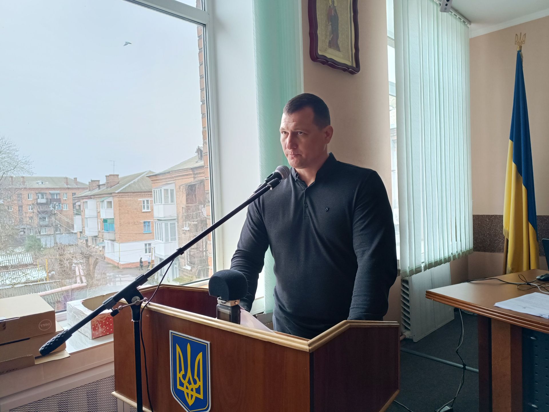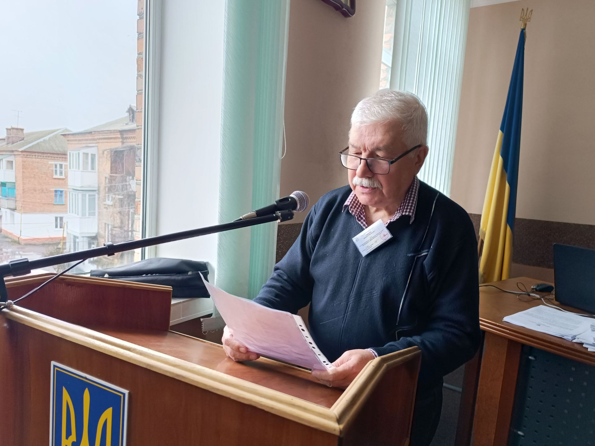 Після того, як дискусія завершилася, до трибуни вийшов голова фракції «Українська стратегія Гройсмана» у Вінницькій обласній раді Олександр Хом’як.
