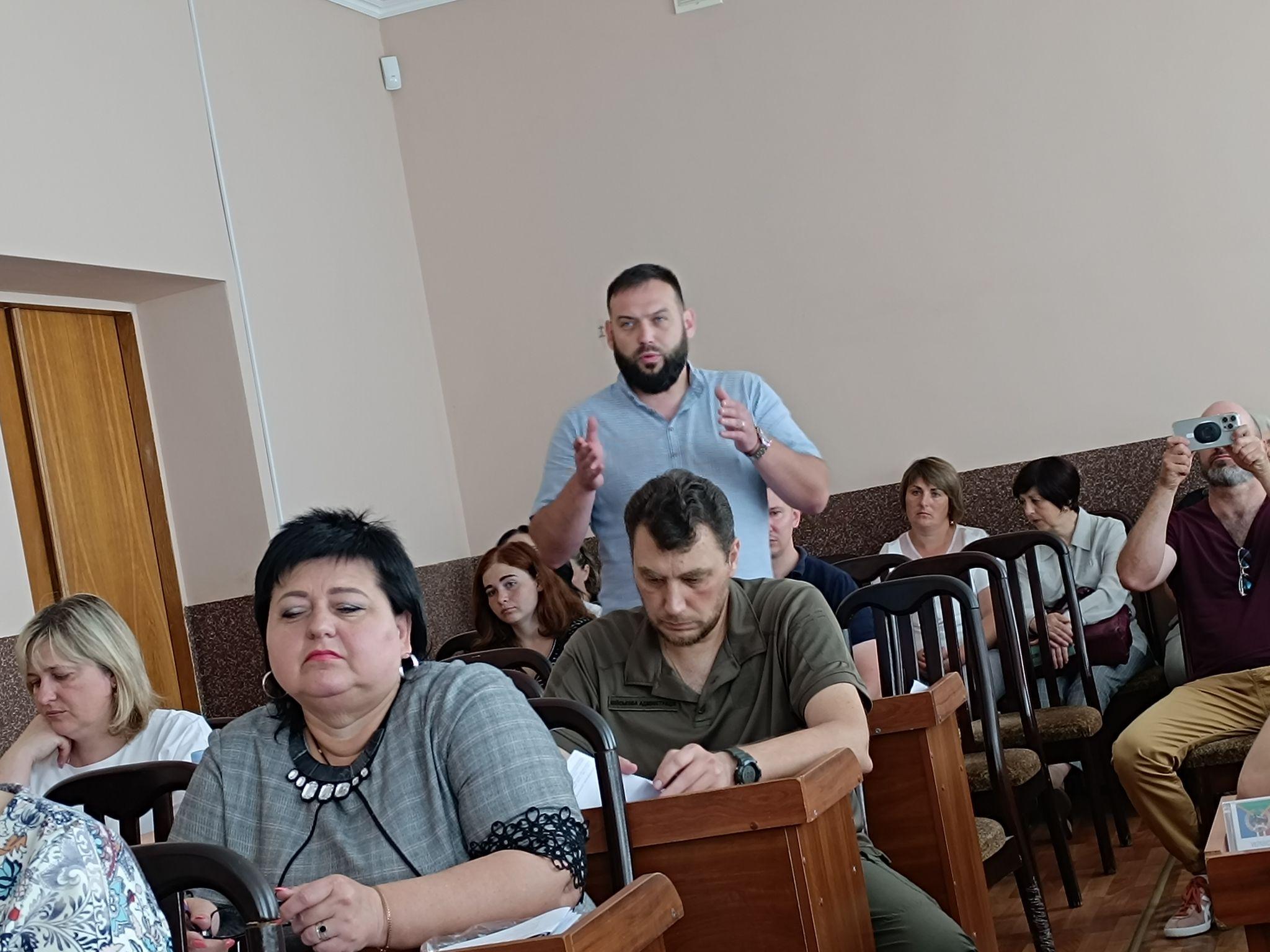 — Позачергова сесія, наскільки мені не зраджує пам’ять, скликається виключно з нагальних питань, — взяв слово Дмитро Бернатович, депутат від «Європейської солідарності». — У нас в порядку денному більше сорока питань. Наша фракція вважає, що нагальними питаннями на сьогодні вважаються виключно питання військових і їх забезпечення. Решту питань можна розглянути на черговій сесії, яка буде скликана відповідно до регламенту і Закону про місцеве самоврядування.