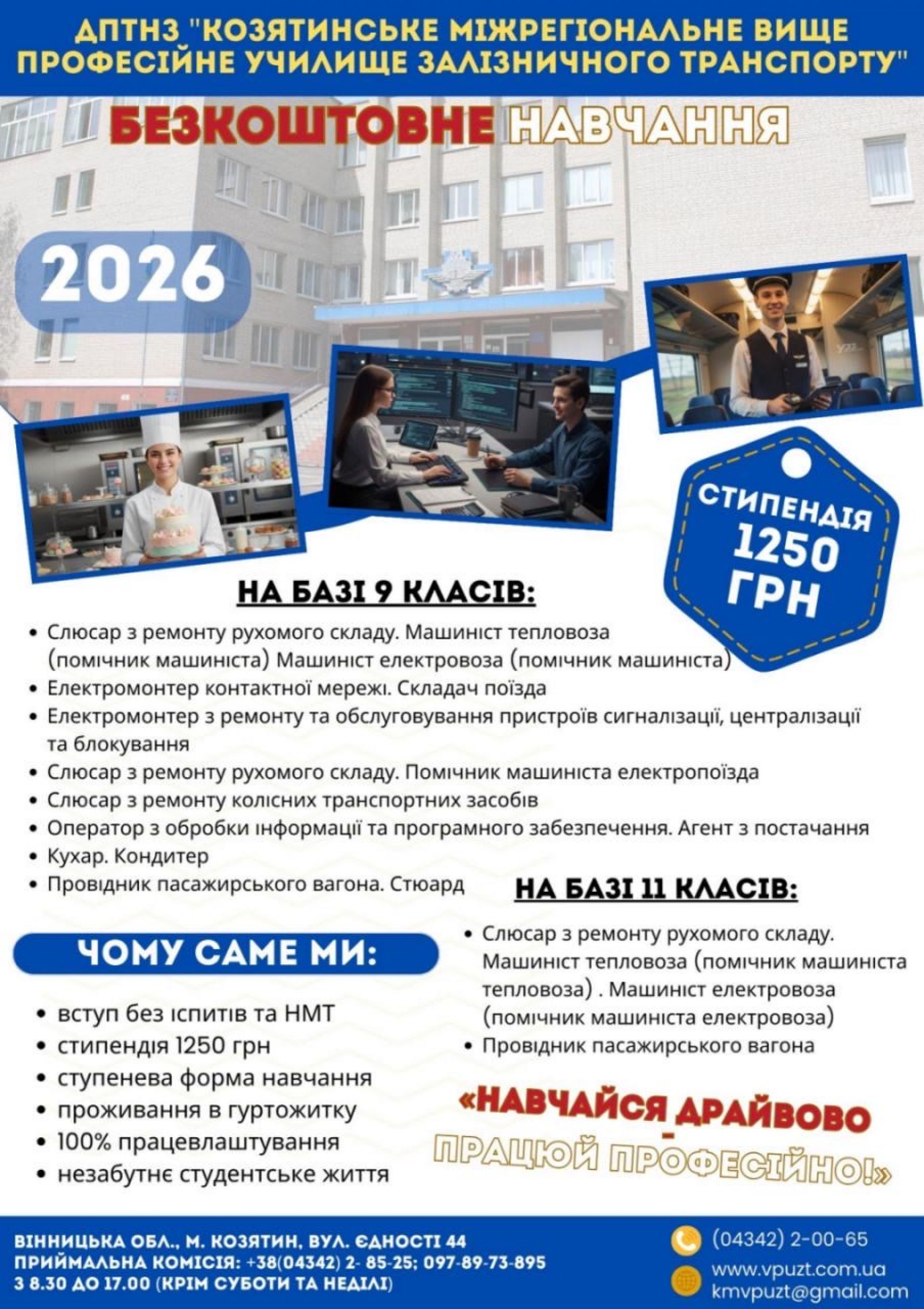 - У Козятині випускники щороку замислюються над вибором майбутньої професії та навчального закладу. Розповідаємо, де у Козятині можна здобути професійну освіту, які навчальні заклади працюють у громаді, які спеціальності доступні та як подати документи на вступ.