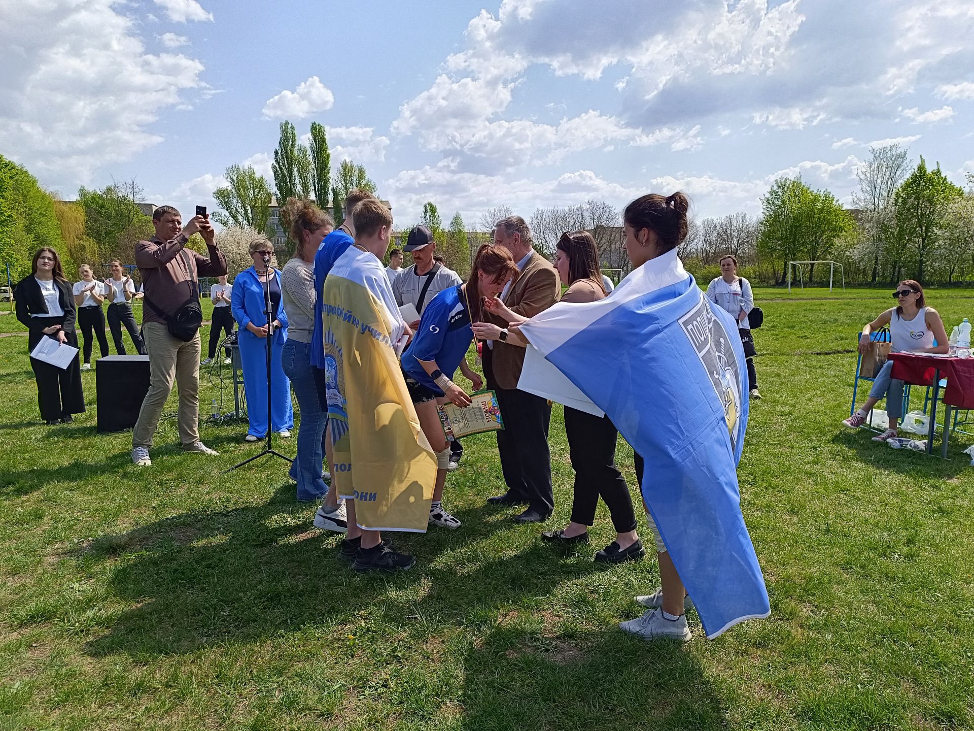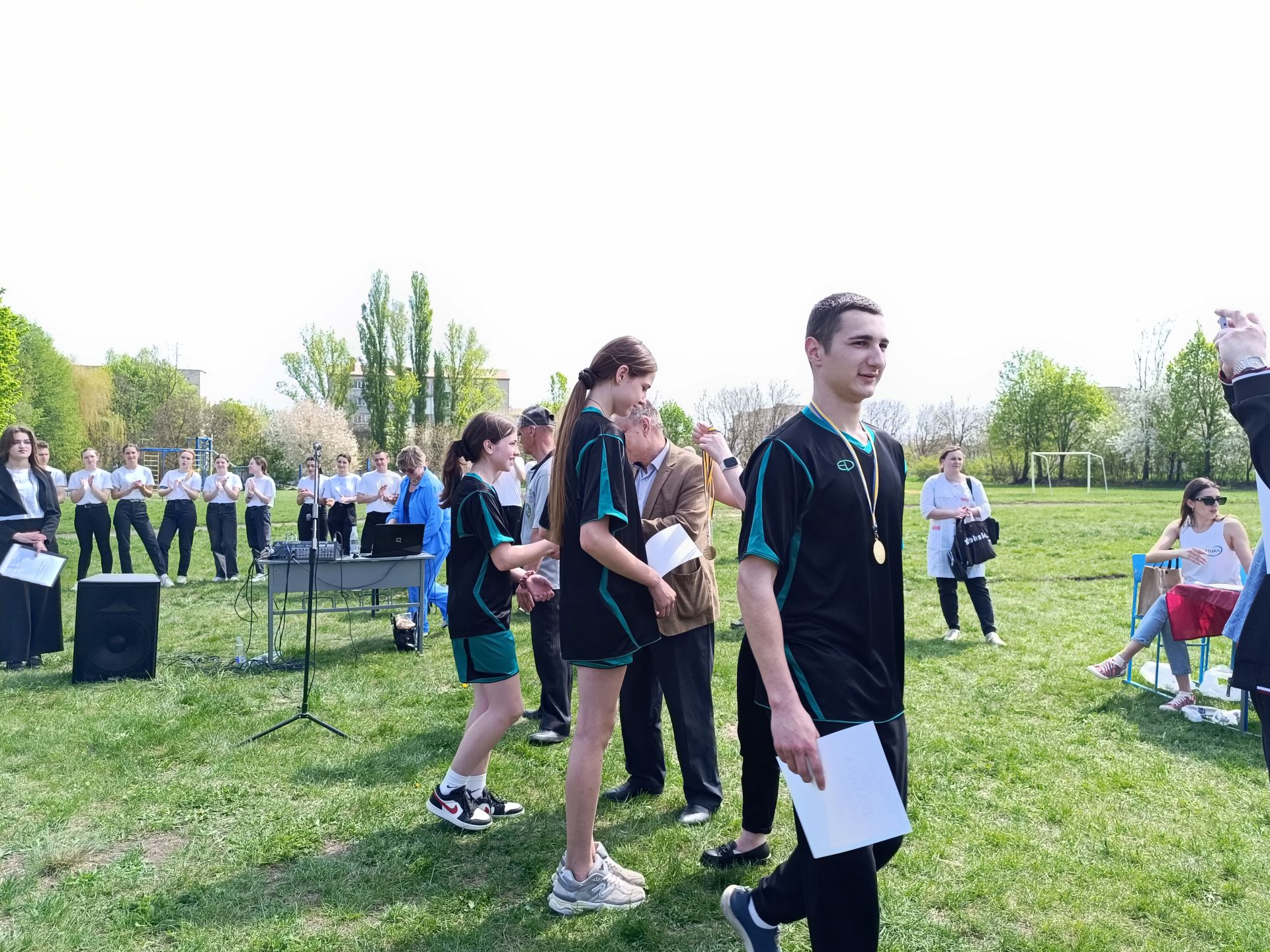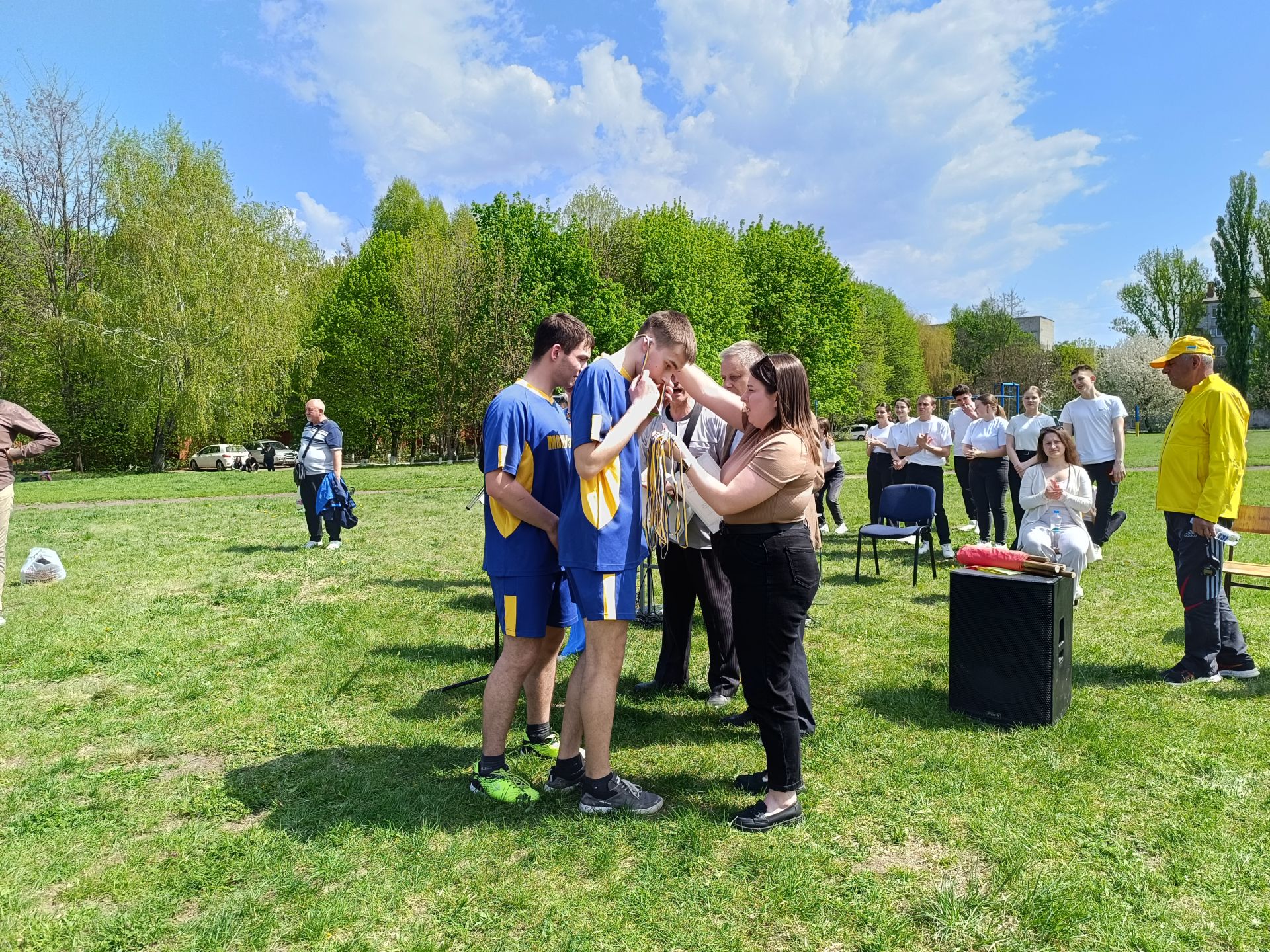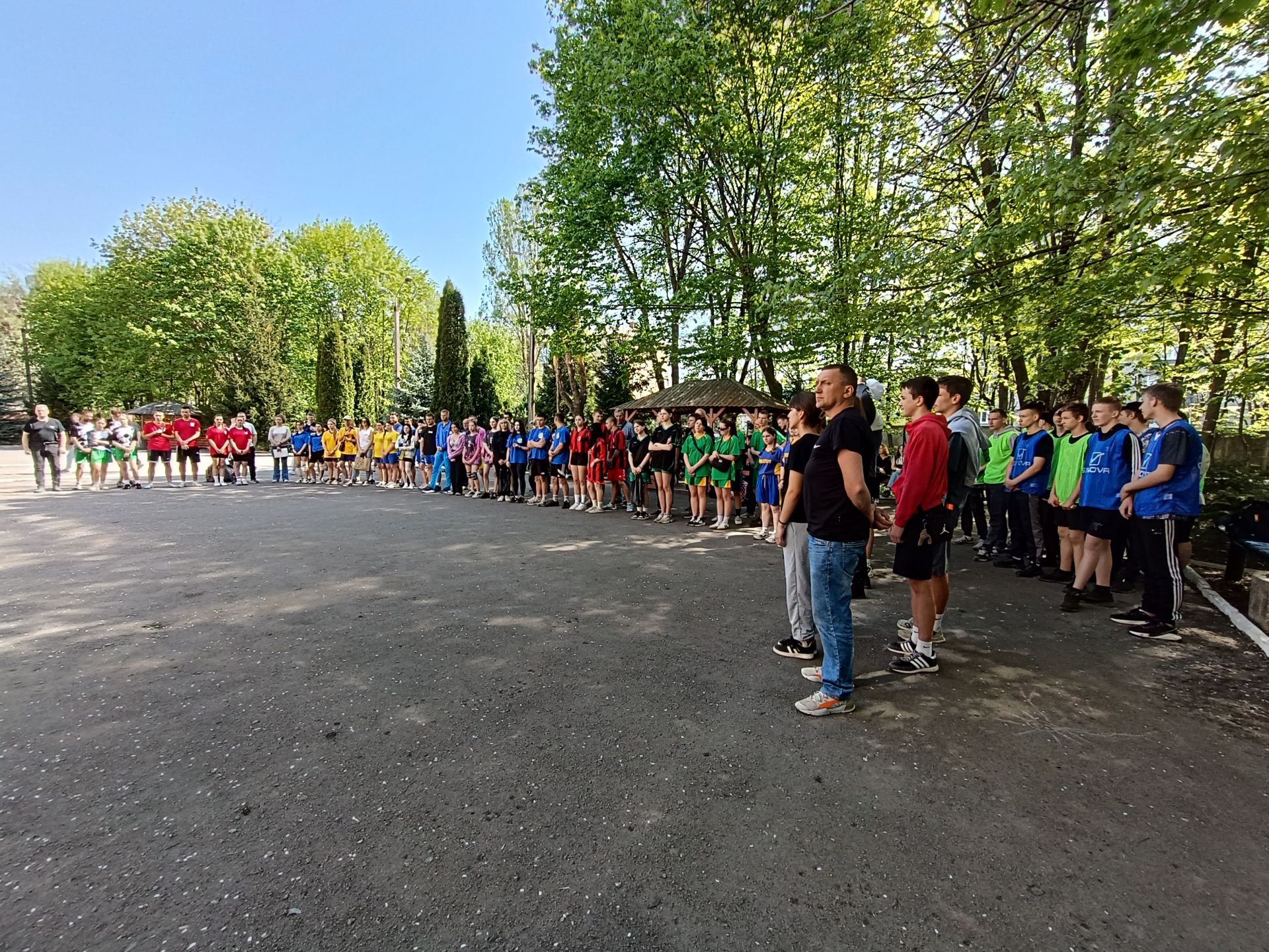 На полі лунає «На старт! Увага! Руш» і змагання починаються. Першими стартують команди Центру професійно-технічної освіти №1 та Вищого художнього професійно-технічного училища №5.