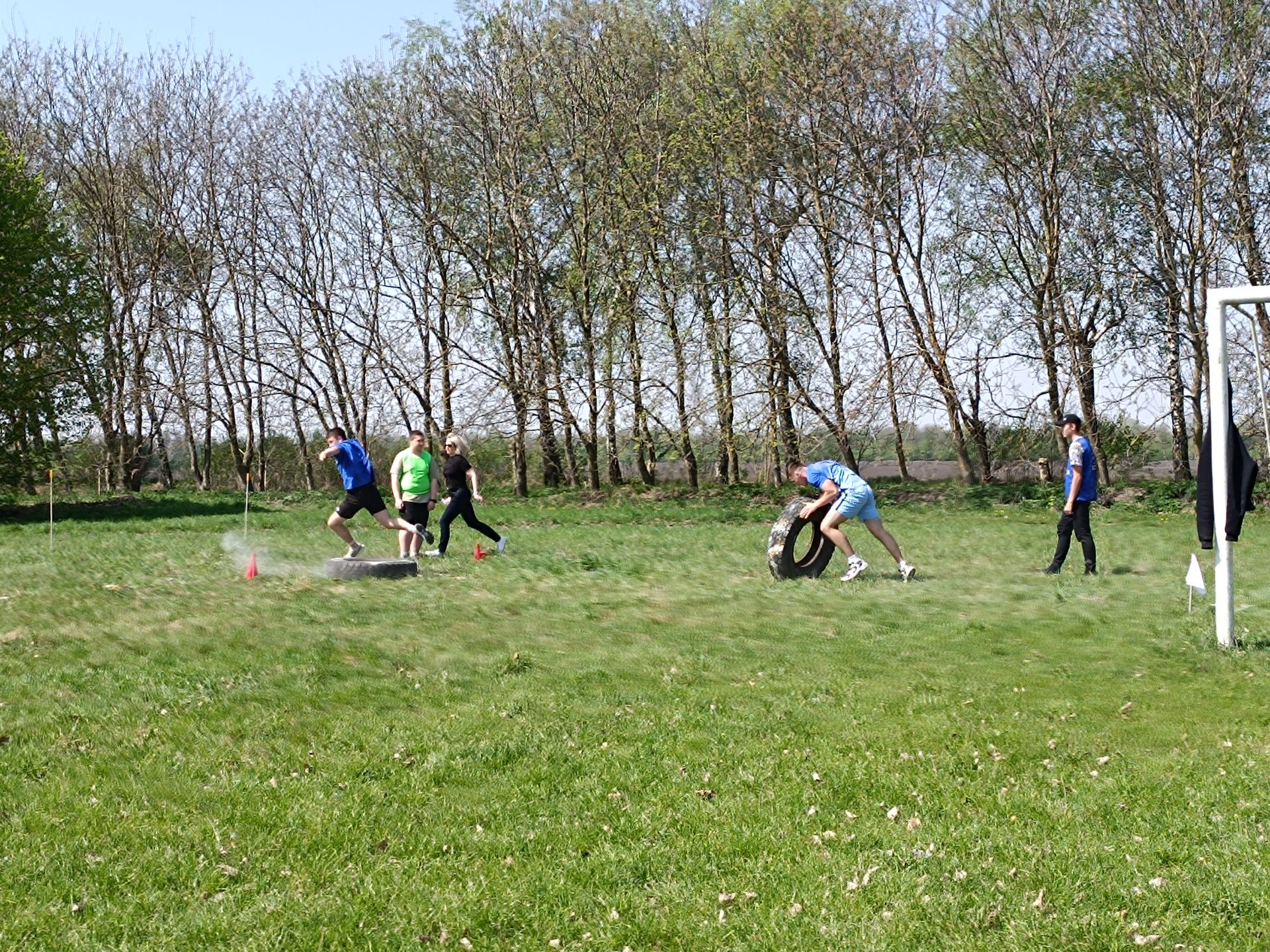 У кожній команді по чотири учасники: дві дівчини і два хлопця. І кожен відповідає за свій етап. Першими з команди стартують дівчата. Вони біжать із перешкодами, долаючи на своєму шляху флагштоки, обручі і навіть тунель і передають естафету хлопцям. Юнакам потрібно тягнути «сани» — покришки, до яких прикріплені мотузки, а потім вісім разів перекинути шину. Третій етап знову за дівчатами — вони мають влучити тенісним м’ячиком у корзину. Спроби, до речі, обмежені, а за кожне невлучання додаються штрафні бали. По тому дівчата стрибають через перешкоди і передають естафету хлопцям, які спершу біжать із із гантелями, а потім— човниковим бігом і завершують естафету.