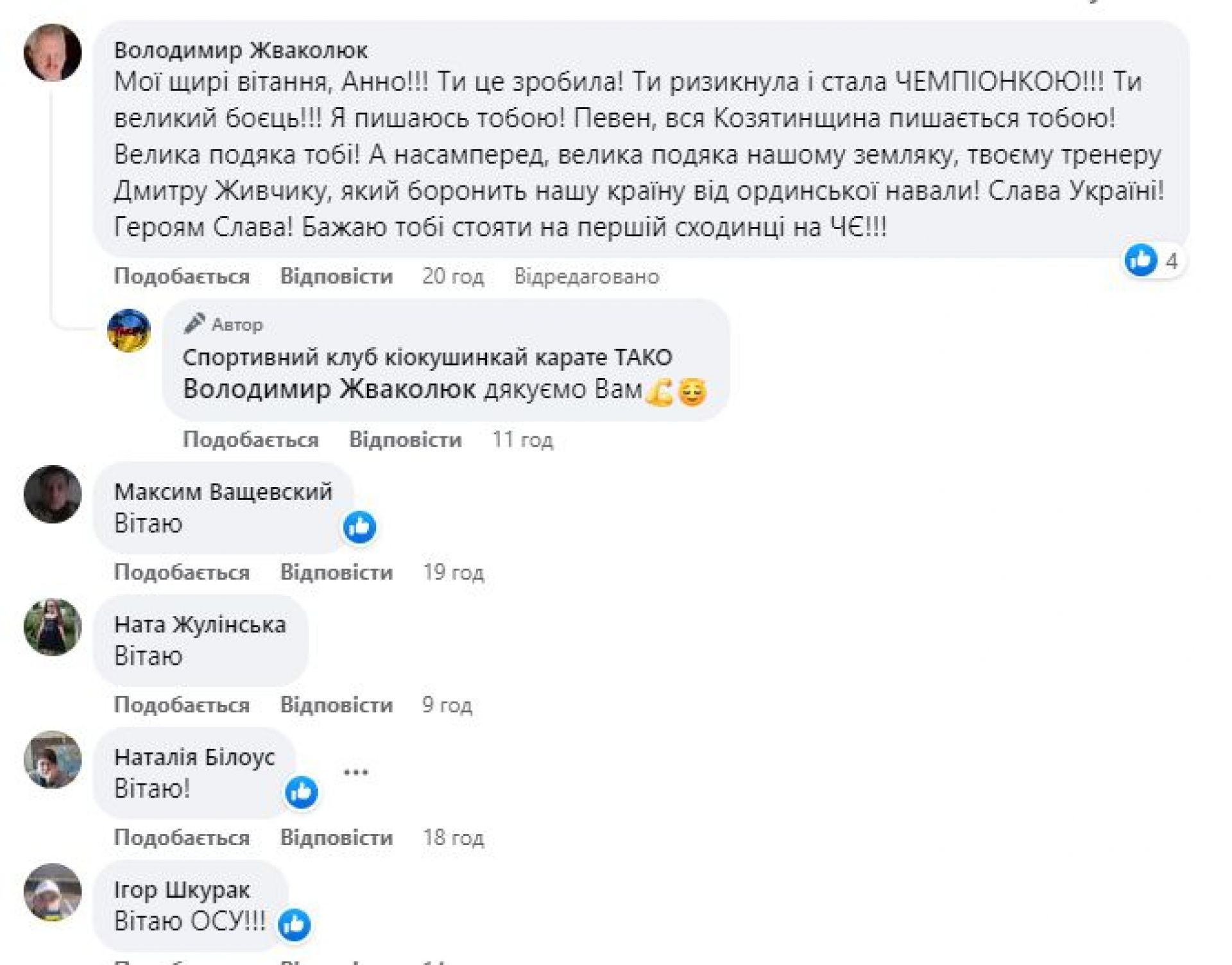 — На жаль, на цих змаганнях не міг бути присутній наш тренер — Дмитро Живчик, щиро дякуємо Вам за підтримку та віру, за вміння та знання! Дякуємо Shinkyokushinkai Lviv за організацію турніру! Дякуємо нашим ЗСУ
