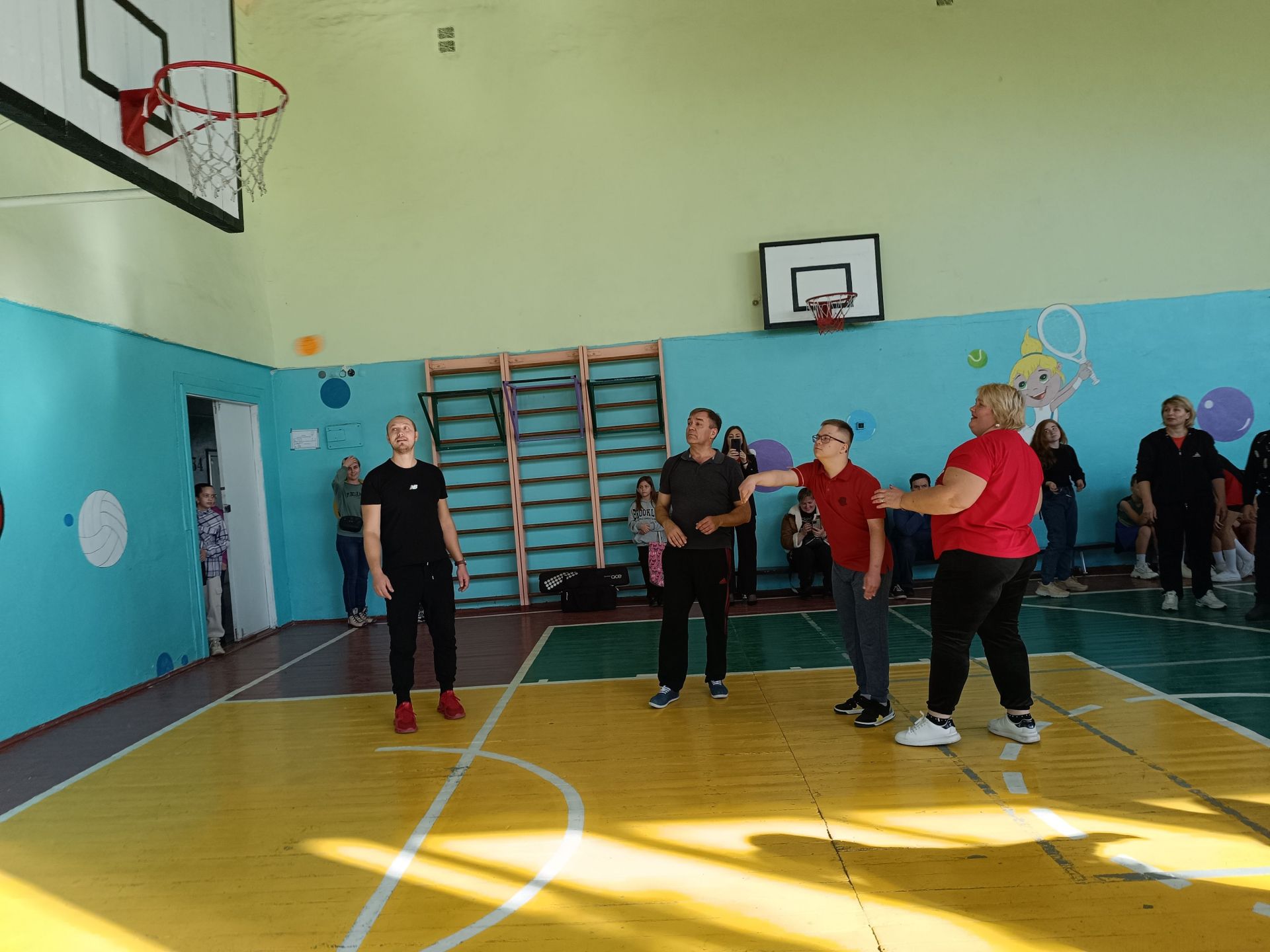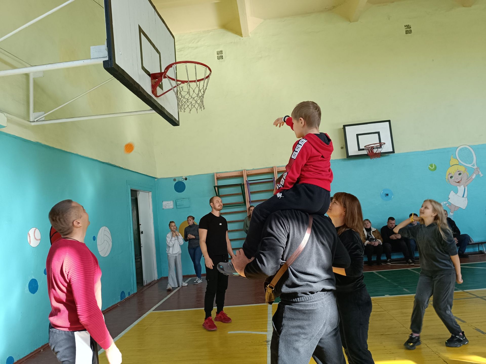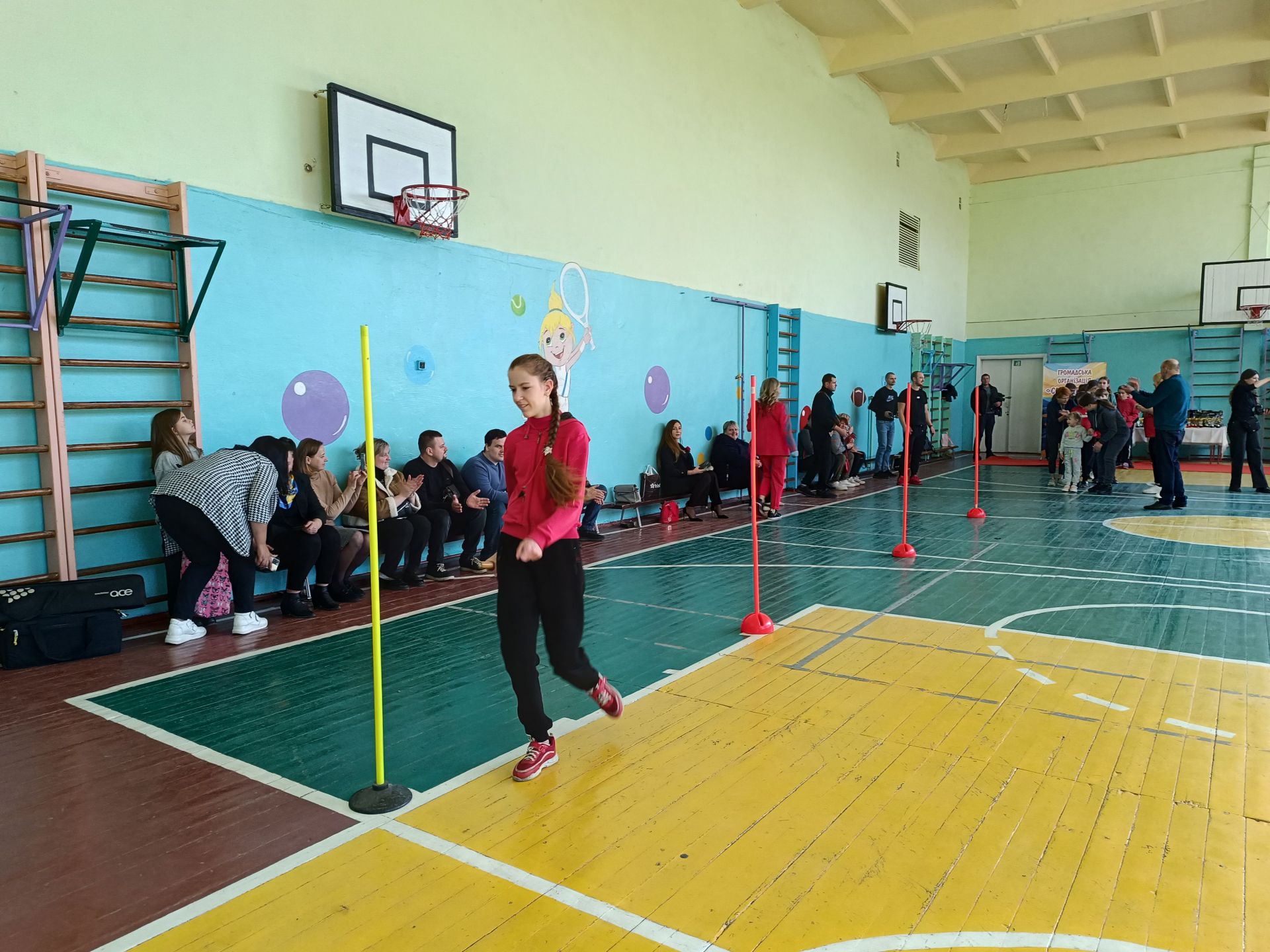 Після звуку свистка «Силачі» і «Титани» взялися долати перешкоди. Наймолодшим допомагали батьки і капітани команд. Коли всі учасники пробігли естафету, помічники Євген та Ігор поспішили прибрати із залу перешкоди, а Віктор Стаднік роздав дітям реквізит для наступного конкурсу — м’які м’ячики. Завдання кожного — потрапити цим м’ячиком в баскетбольний щит. За влучання команда отримує одне очко. Капітани активно підтримували і підбадьорювали своїх гравців. А потім до зали винесли новий реквізит — міні-ворота для футболу. Хлопчики з дівчатками забивали гол.