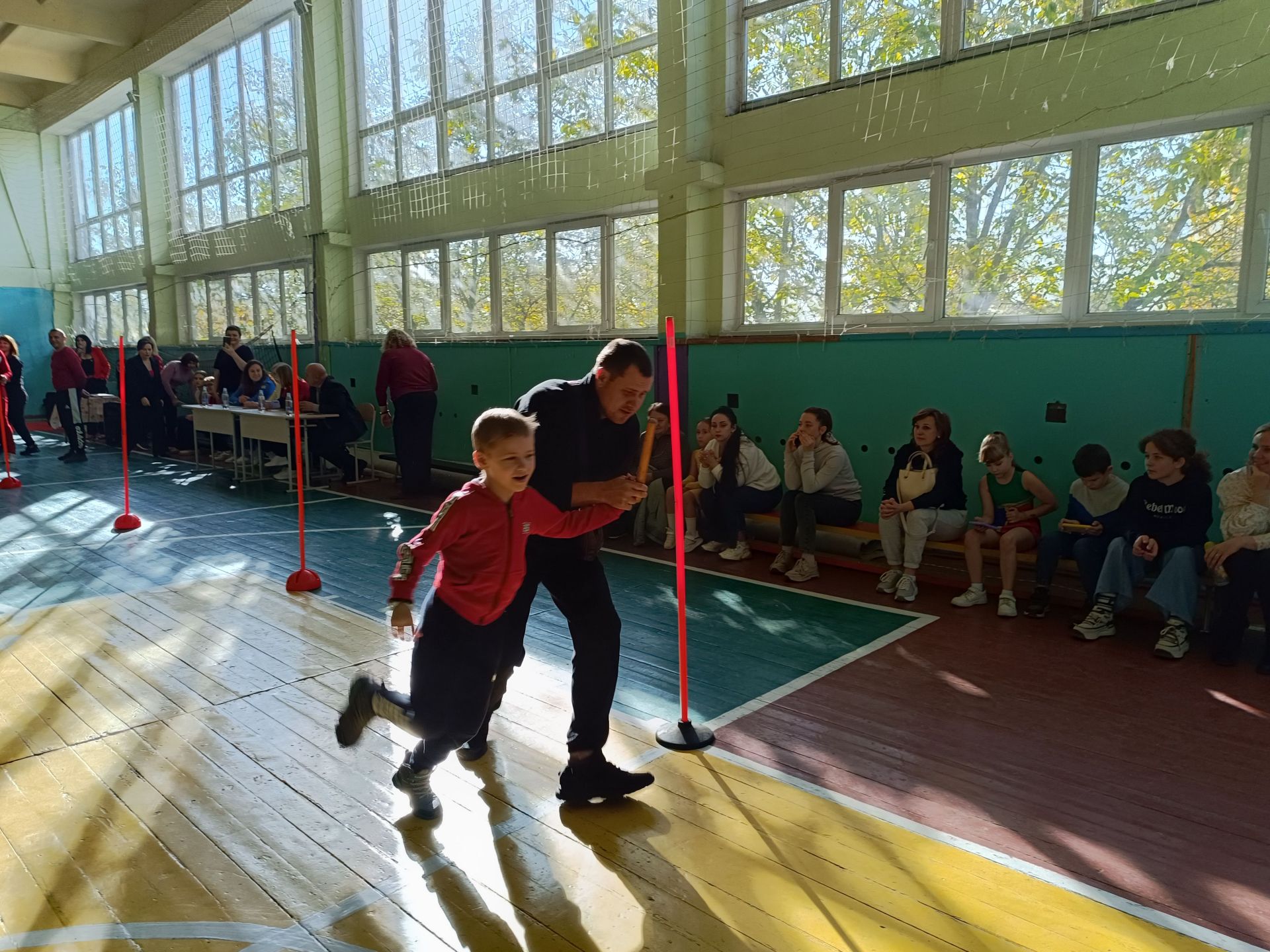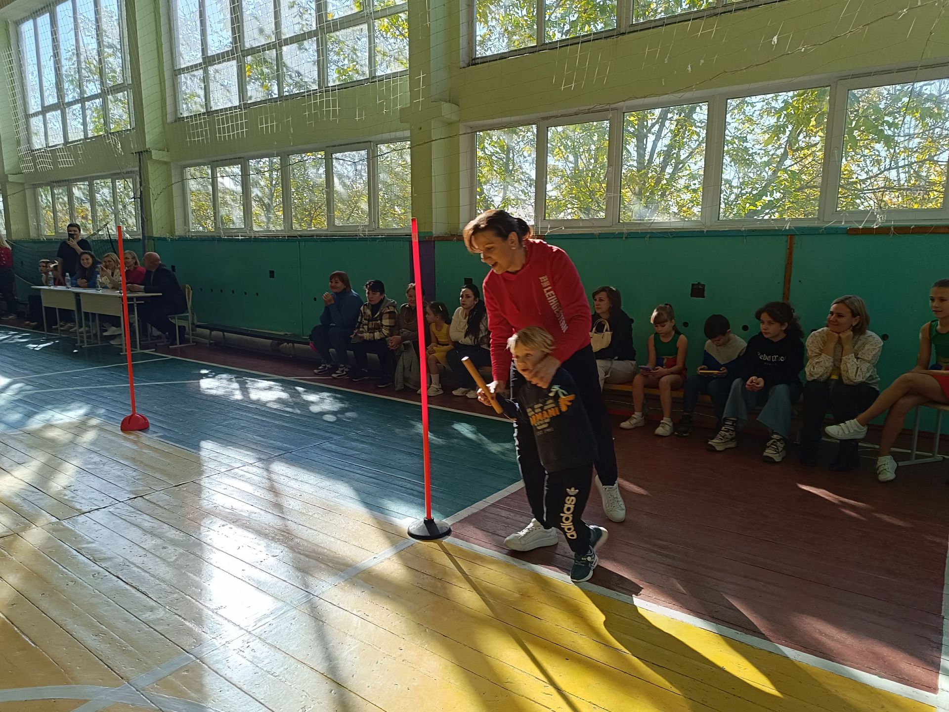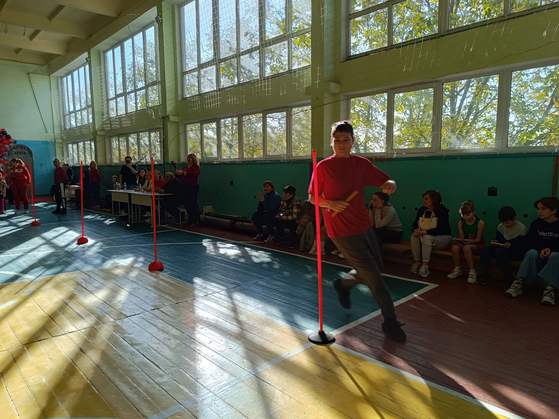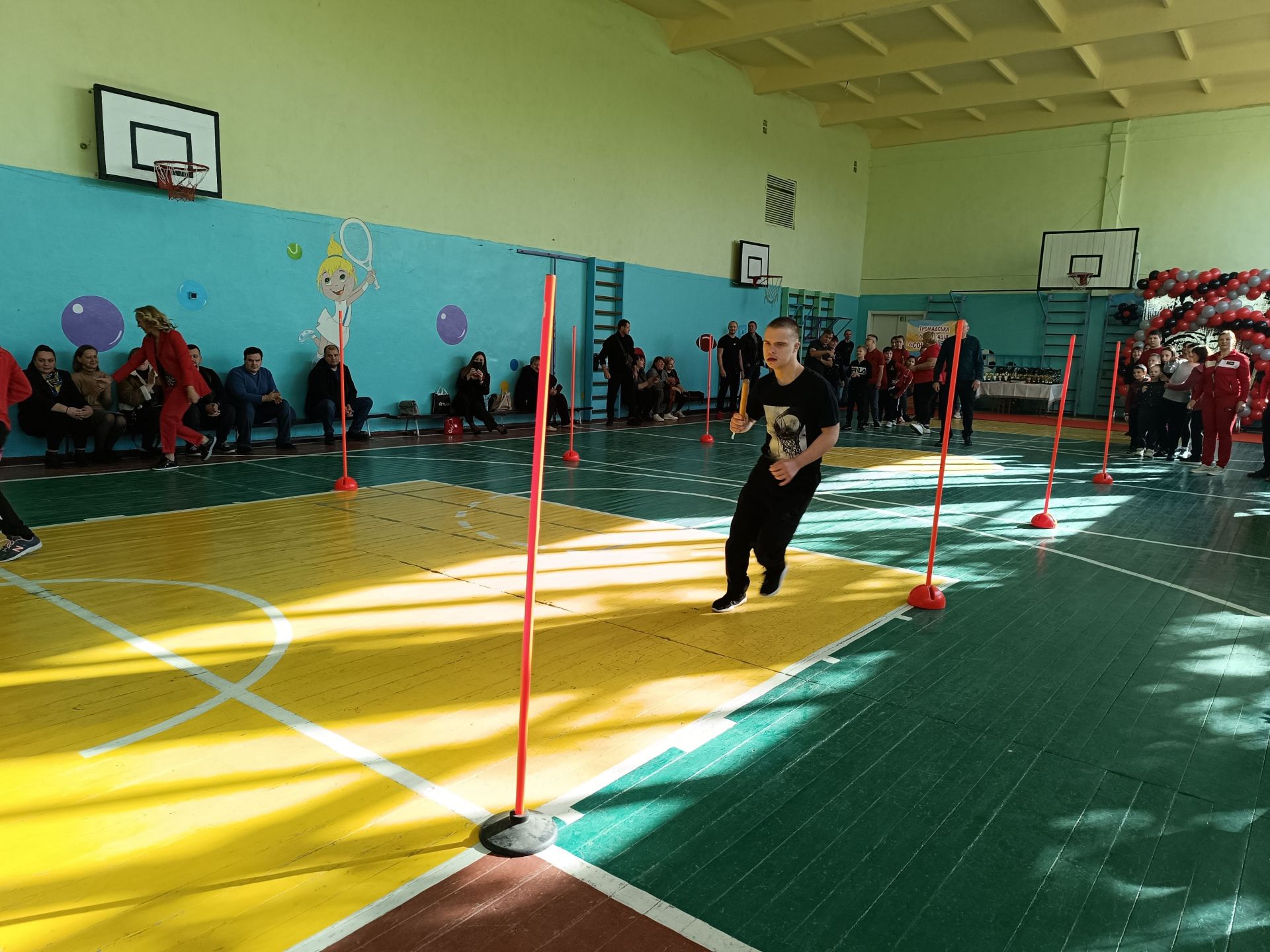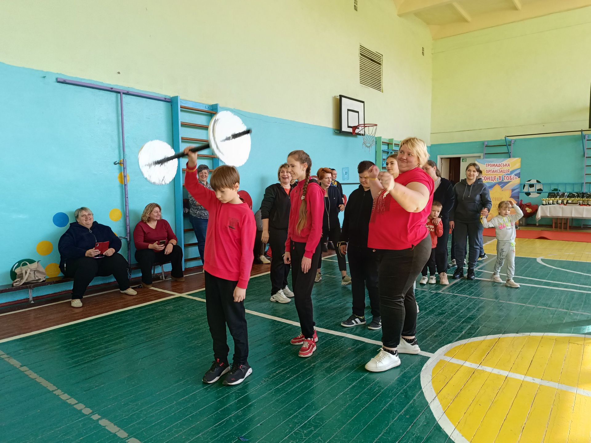 Настав час змагань. На середину залу зайшов спортивний інструктор — вчитель фізкультури опорного ліцею Віктор Стаднік. Інструктор одразу вишикував учасників команд і познайомився із капітанами: «Силачів» очолив Роман Федорченко, «Титанів» — Карім Шахін. По тому Віктор Стаднік показав реквізит для першого змагання: естафетні палички.