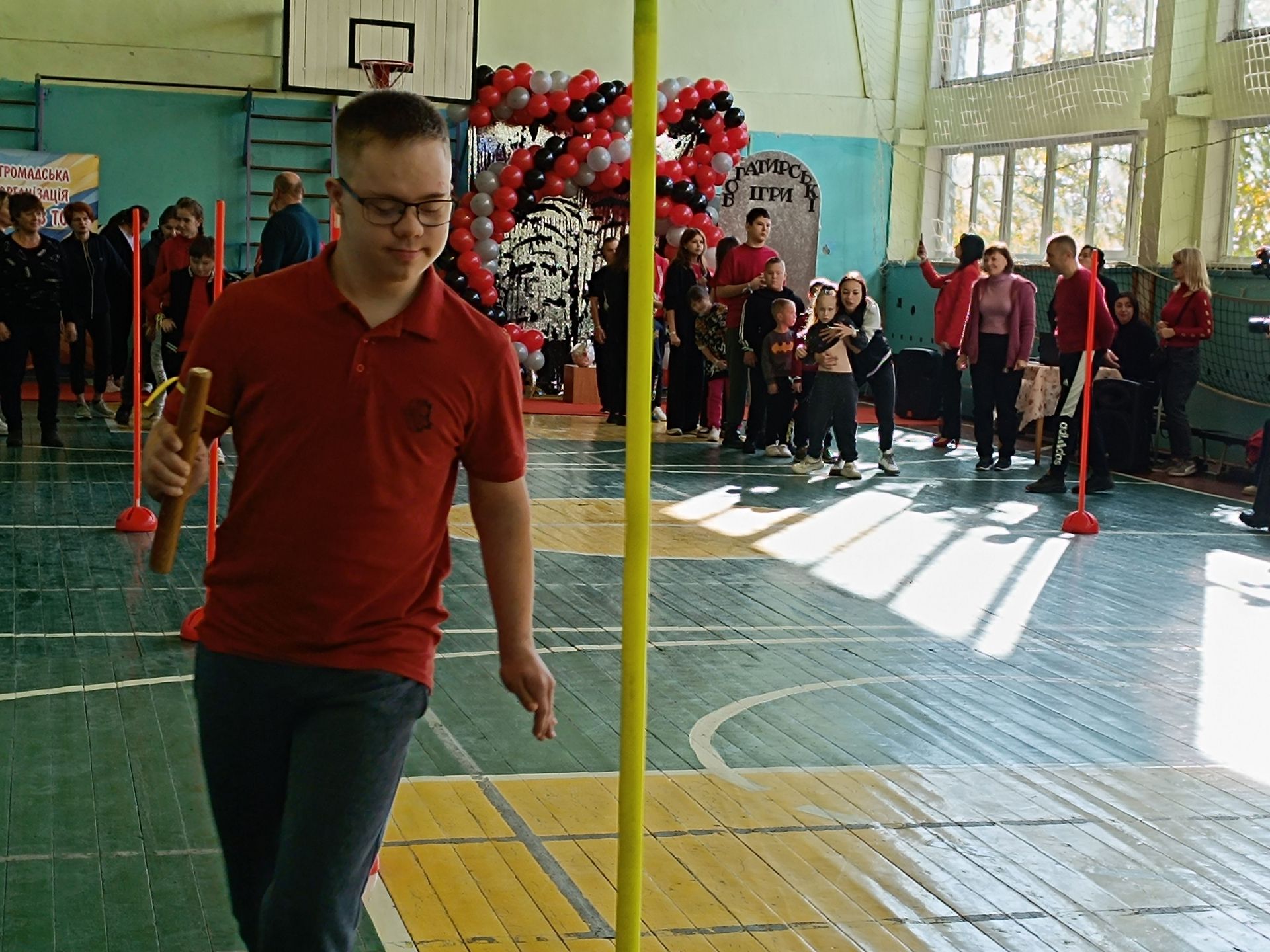 Субота, 26 жовтня. Спортивна зала опорного ліцею перетворилася на арену для змагань. Сьогодні тут вперше в історії Козятина проведуть Богатирські ігри для дітей. Захід підготувала спільно із волонтерами громадська організація «Сонце в тобі», яка займається інтеграцією дітей з інвалідністю в суспільство. Перш за все, хвилиною мовчання вшанували пам’ять Героїв, яких ми втратили на війні. По тому Карім Шахін та Роман Федорченко виконали Гімн.